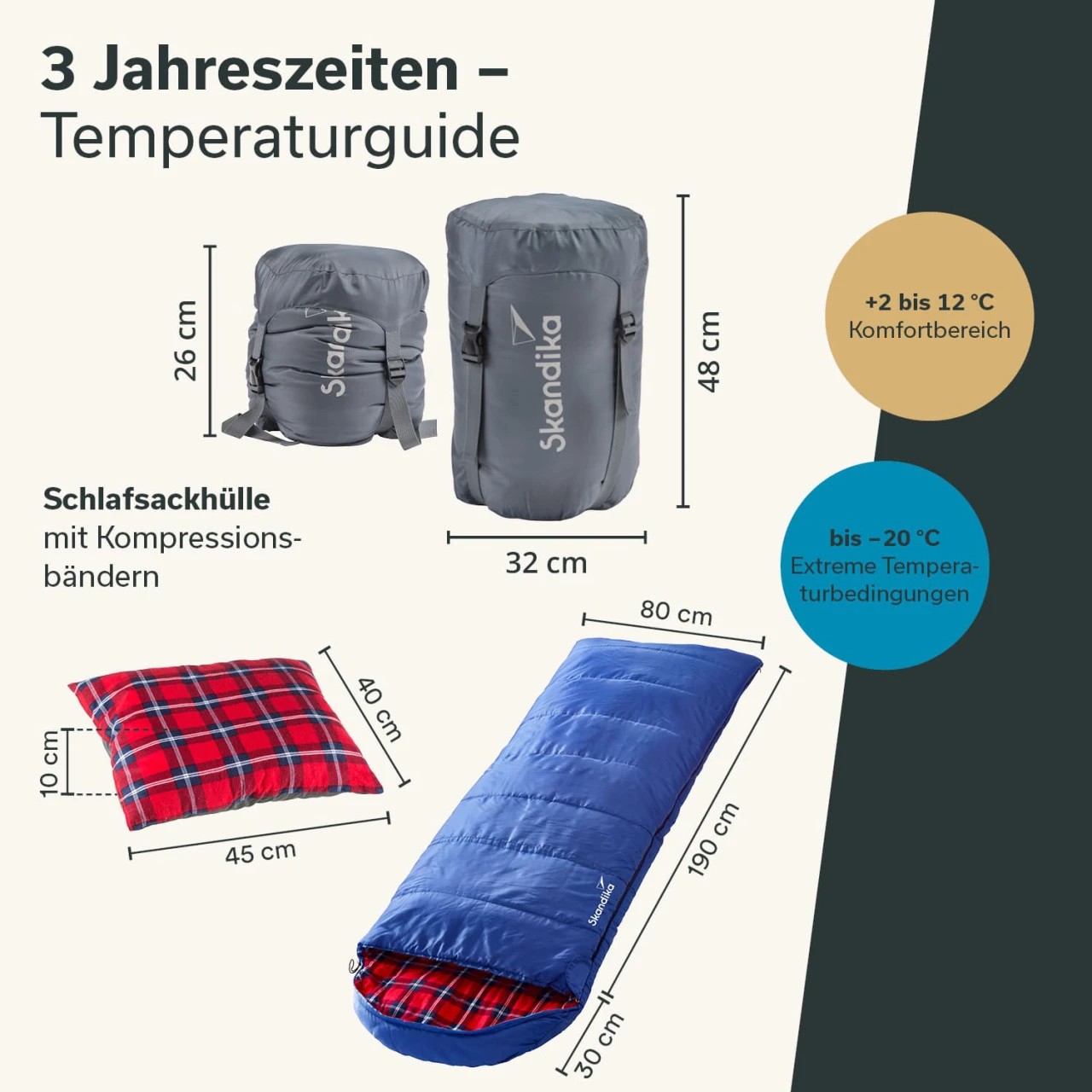 Skandika DUNDEE Bundle = 220 x 80 cm Schlafsack + 45 x 40 cm Kissen