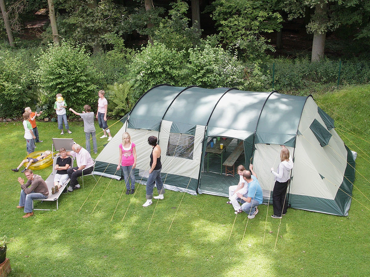 Das Hurricane ist das optimale Zelt für ihren Gruppen- oder Familienurlaub. Durch seine Tunnelform mit den Kabinen an beiden Enden wird der Innenraum optimal genutzt. Im Mittelbereich entsteht ein großzügiger Wohnbereich in dem alle Platz finden. Außerdem bietet das Hurricane enorm viel Stauraum für Gepäck, Lebensmittel oder anderes Zubehör.