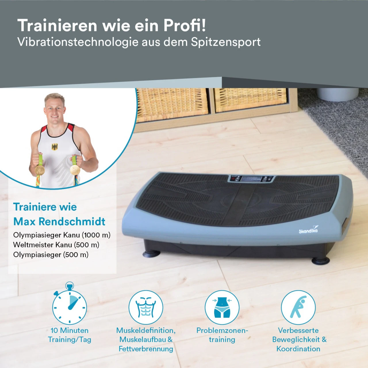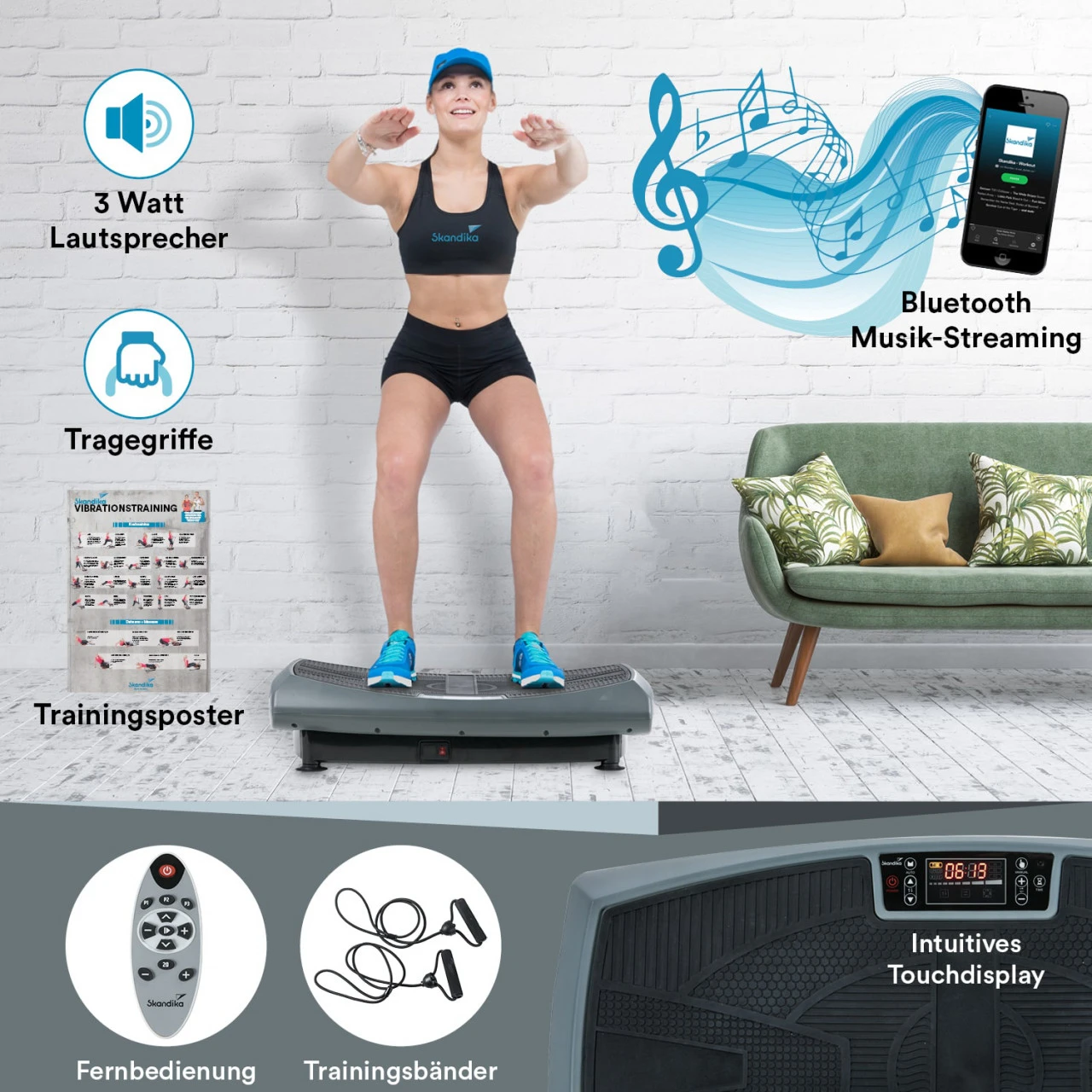 Das elegante Design kombiniert mit der besten Technik – das ist das Skandika-Statement. Dafür haben wir zusätzlich 3 Watt Lautsprecher mit Bluetooth-Connection integriert so dass du während des Trainings deine Lieblingsmusik streamen und hören kannst. Die hohen Massagefrequenzen und die passende Musik helfen dir dann auch nach dem Training bei der notwendigen Regeneration. Denn die verbauten Motoren mit einer Spitzenleistung von 1000 Watt bringen dich ganz schön ins Schwitzen.