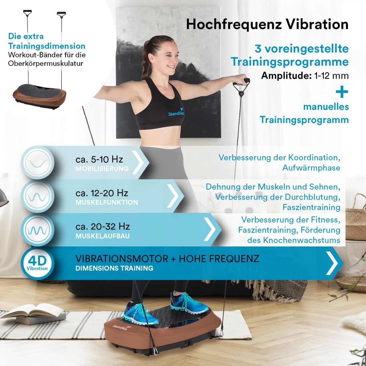 Keinen Platz für einen vollausgestatten Fitnessraum zu Hause? Dann ist das kompakte Multitalent V2500 von Skandika die perfekte Lösung. Unser innovatives Trial-DC-System mit 3 leistungsstarken Motoren kombiniert die klassische Vibration mit High-Tech Oszillation, sodass eine 4D Vibrationstechnologie entsteht – eine optimale Trainingssymbiose aus Vibration und Schwingung in einem.