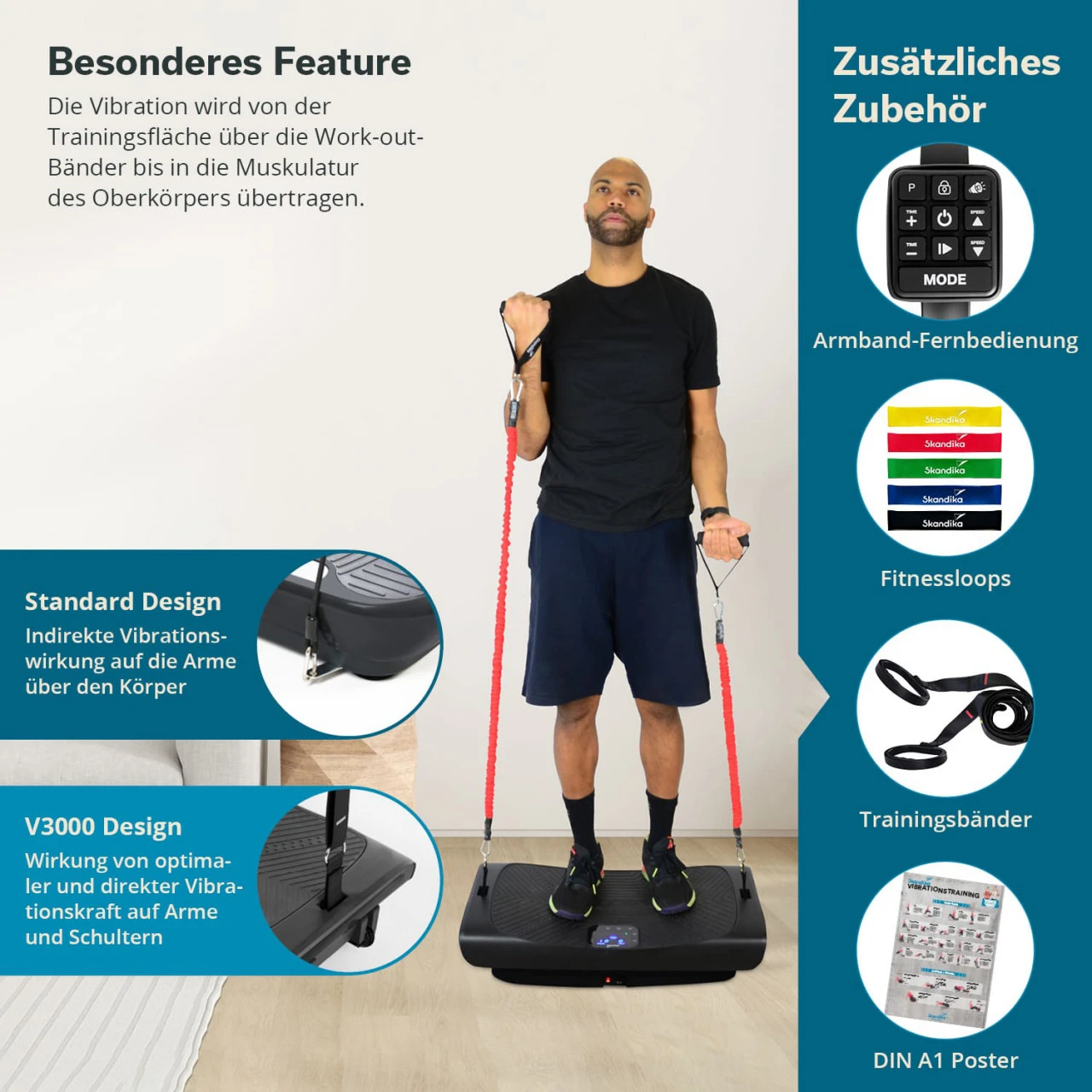 Nun auch im Set erhältlich: Unsere Top-Seller 4D-Vibrationsplatte V3000 zusammen mit dem Skandika Multi-Widerstandbänder-Set. Eine unschlagbare Kombination für das perfekte Ganzkörper-Workout.