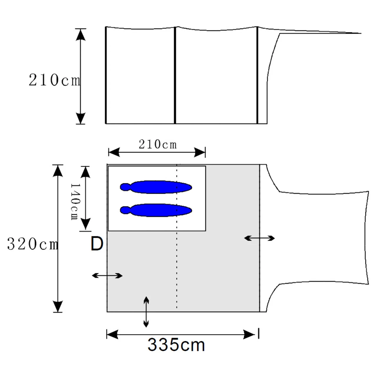 - Material (Schlafkabine): 100% Polyester, atmungsaktiv