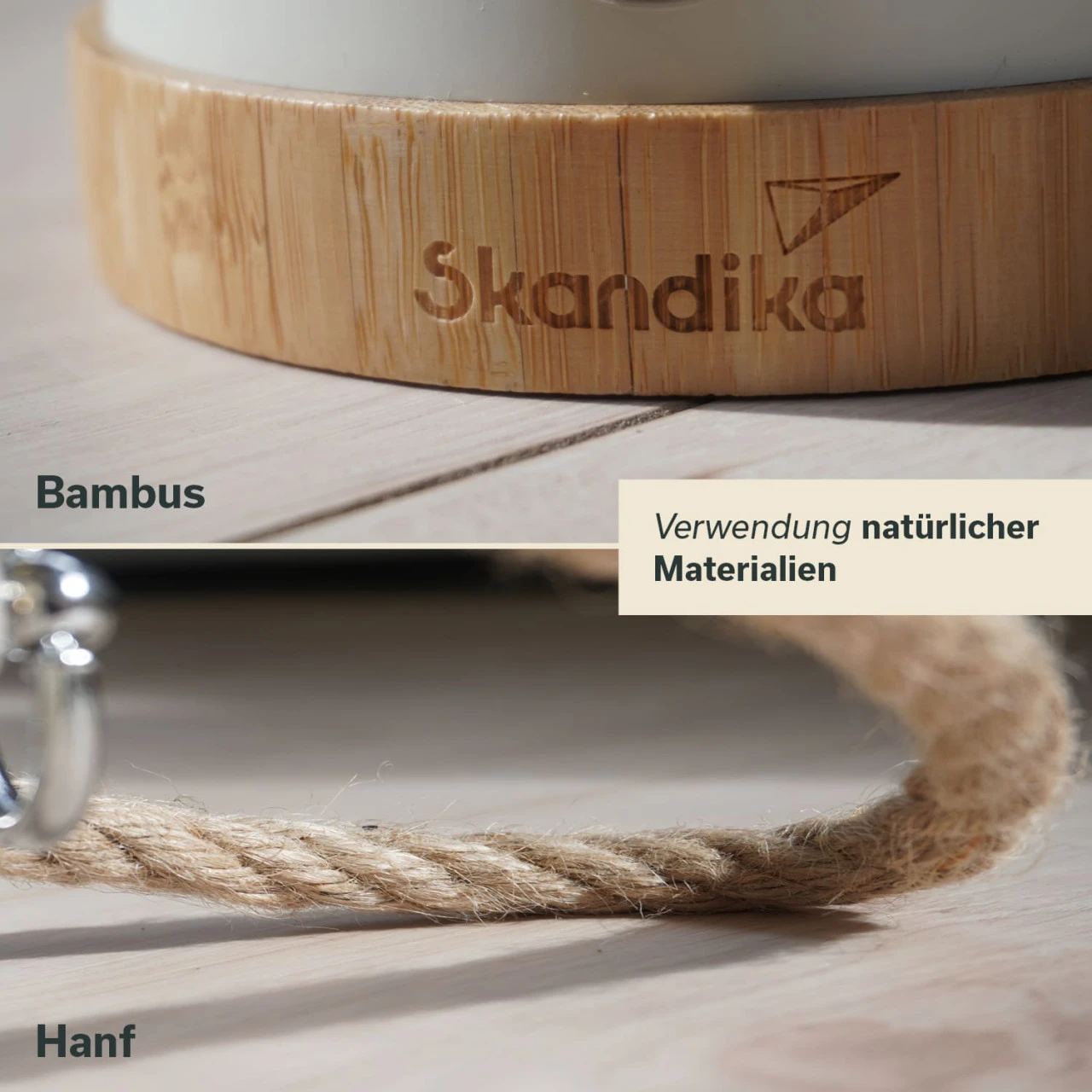 - Stylisches Design mit Bambus und Hanfseil