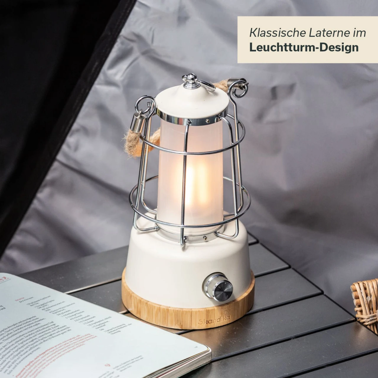 Das klassische Design in Form eines Leuchtturmes und die Verwendung natürlicher Materialien wie Hanfseil und Bambus machen diese Lampe zu einem zeitlosen Hingucker der nicht nur auf dem Campingplatz, sondern auch im heimischen Garten und auf dem Balkon eine gute Figur macht.