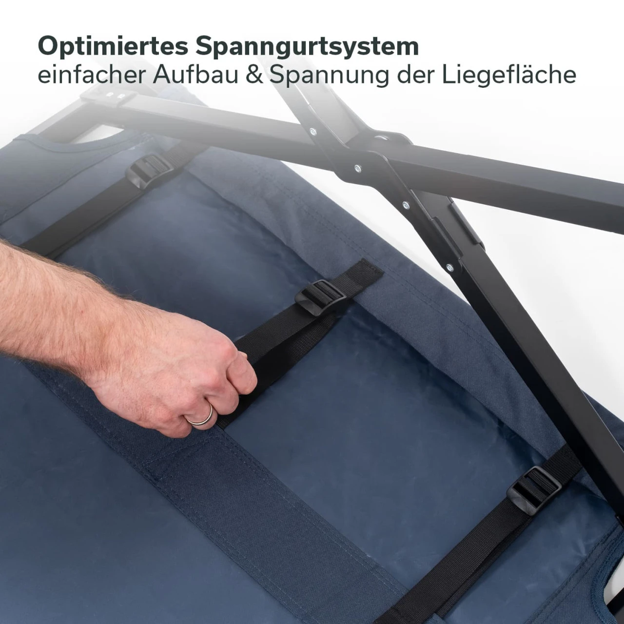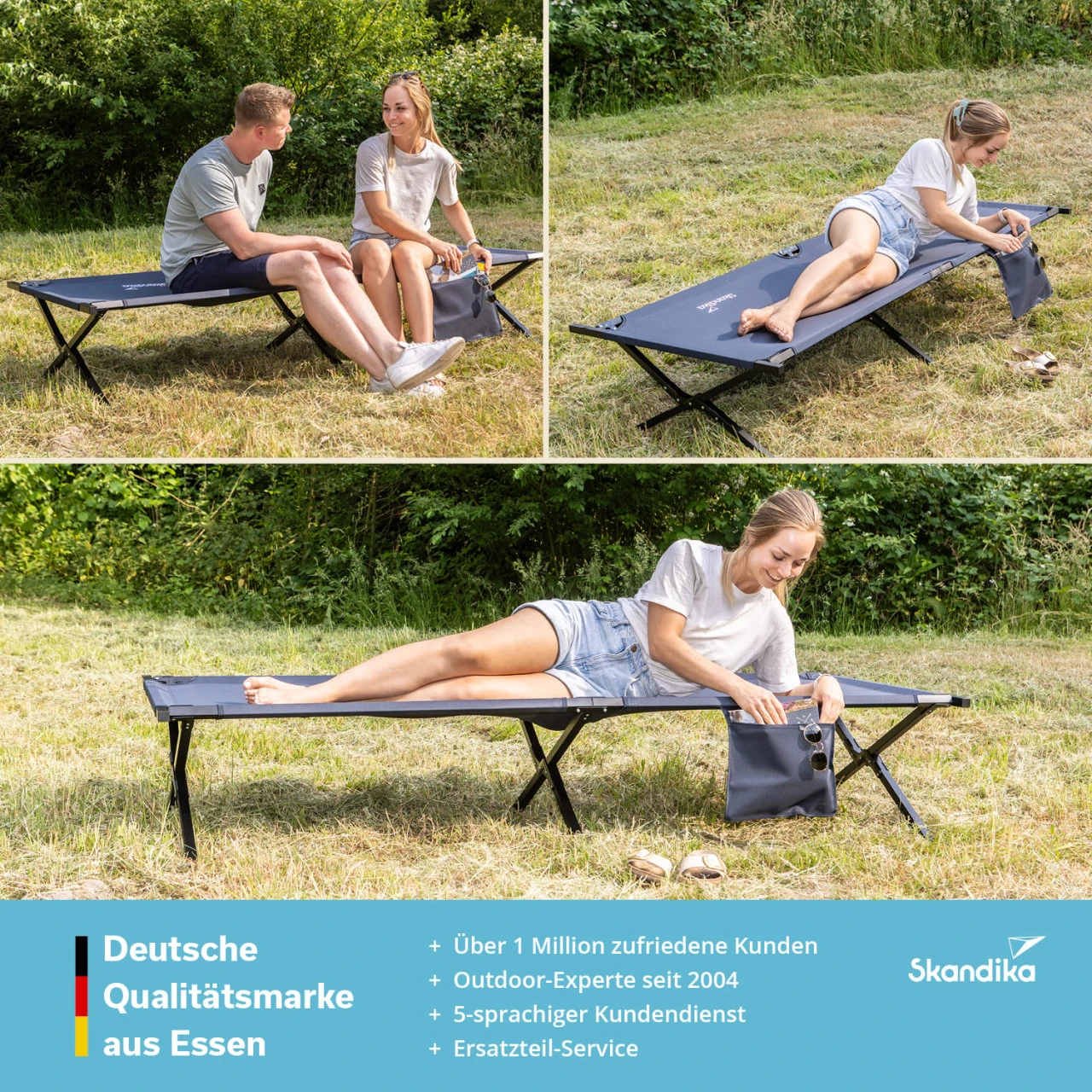Mit der Skandika Campingliege Mutenia wird jede Outdoor-Aktivität zu einem komfortablen Erlebnis. Die vielseitigen Anwendungsmöglichkeiten wie Campingausflüge, Strandurlaube, Roadtrips oder der Einsatz als bequemes Zusatzbett für Gäste und die durchdachten Funktionen dieser Liege machen sie zu einem Must-Have für jeden Outdoor-Liebhaber.