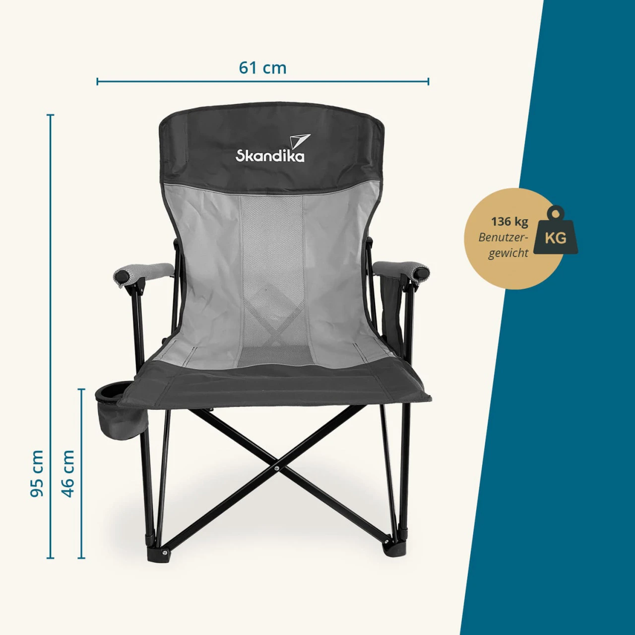 Der Skandika Campingstuhl Kevo ist nicht nur schön stabil, sondern ebenfalls bequem, praktisch und im Handumdrehen einsatzbereit. Perfekt fürs Camping, Picknick und für den Einsatz zu Hause.