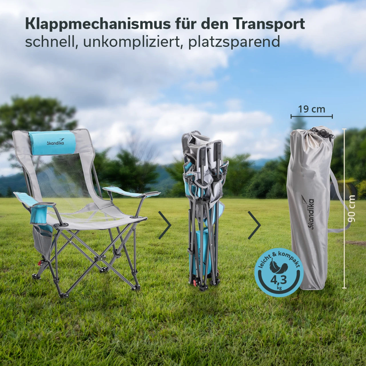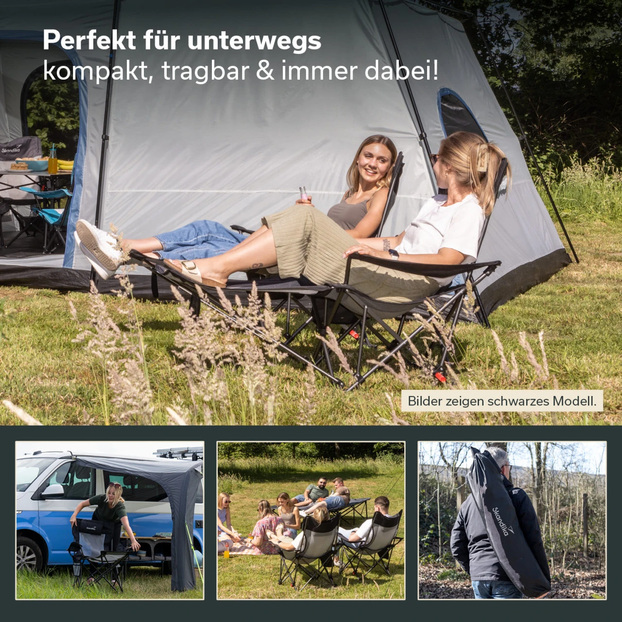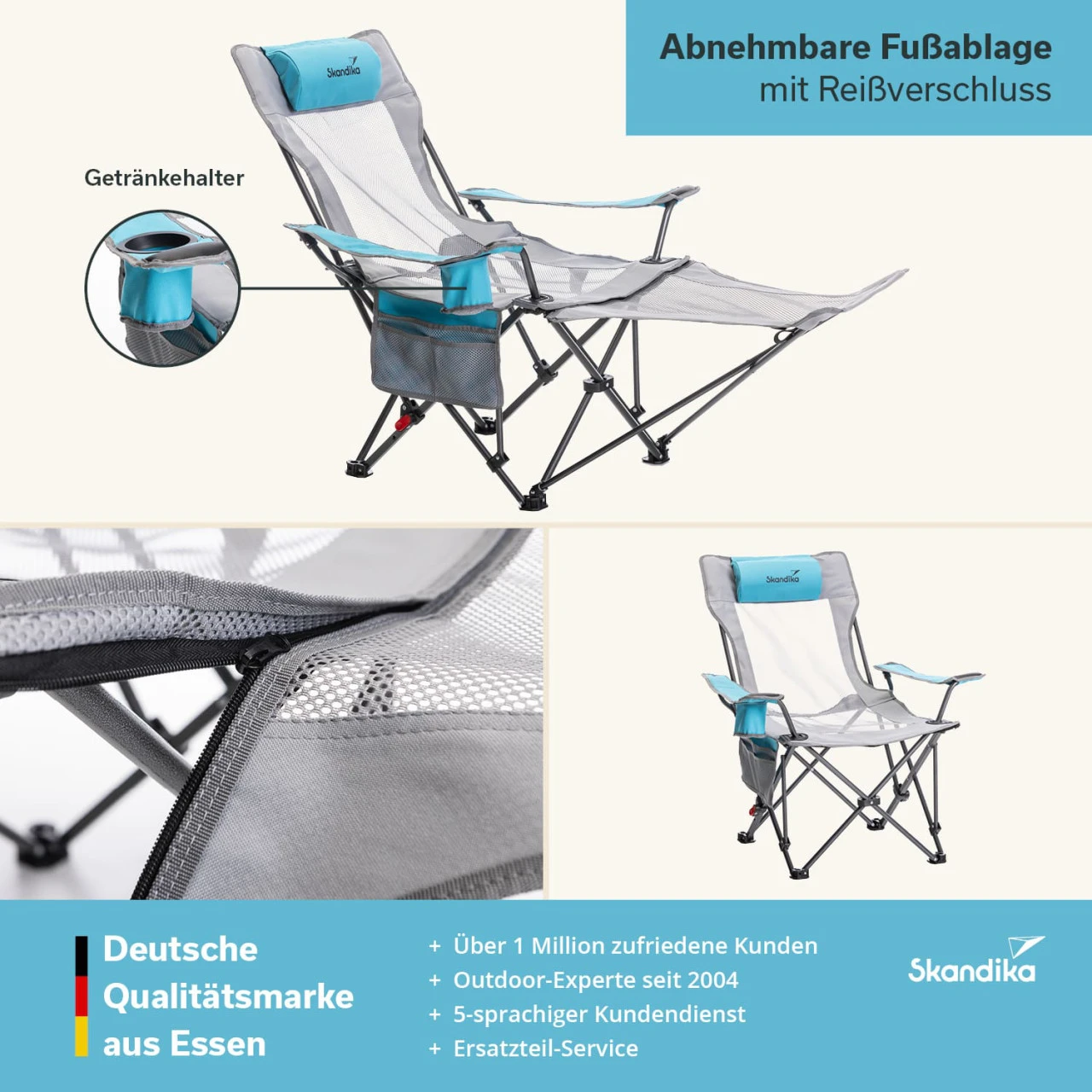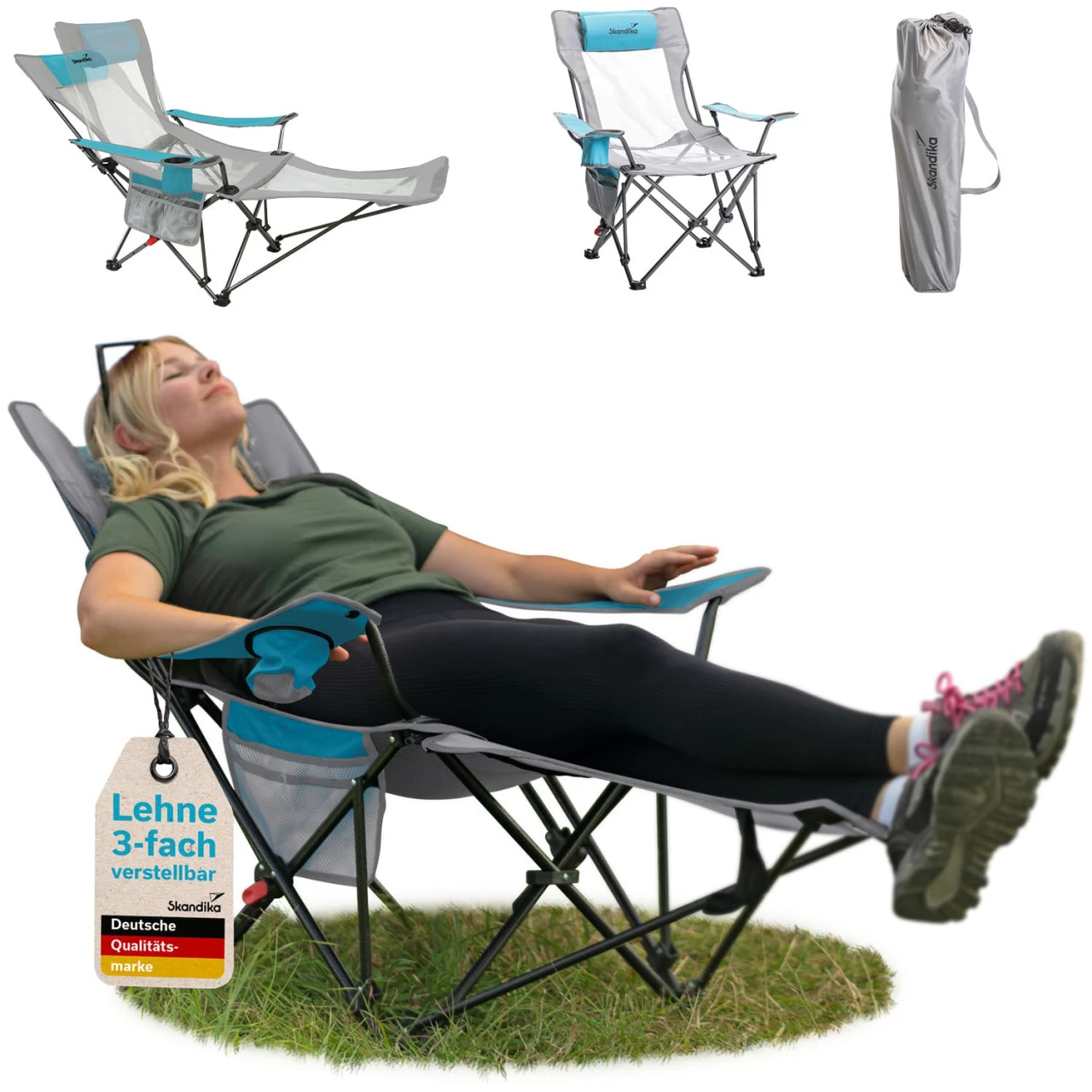 Achtung an all diejenigen, die eine Vorliebe für eine bequeme Sitzposition haben und ab und zu auch einfach mal die Füße hochlegen wollen, aber keine Lust auf sperrige und schwere Campingmöbel haben: Skandika hat die Lösung!