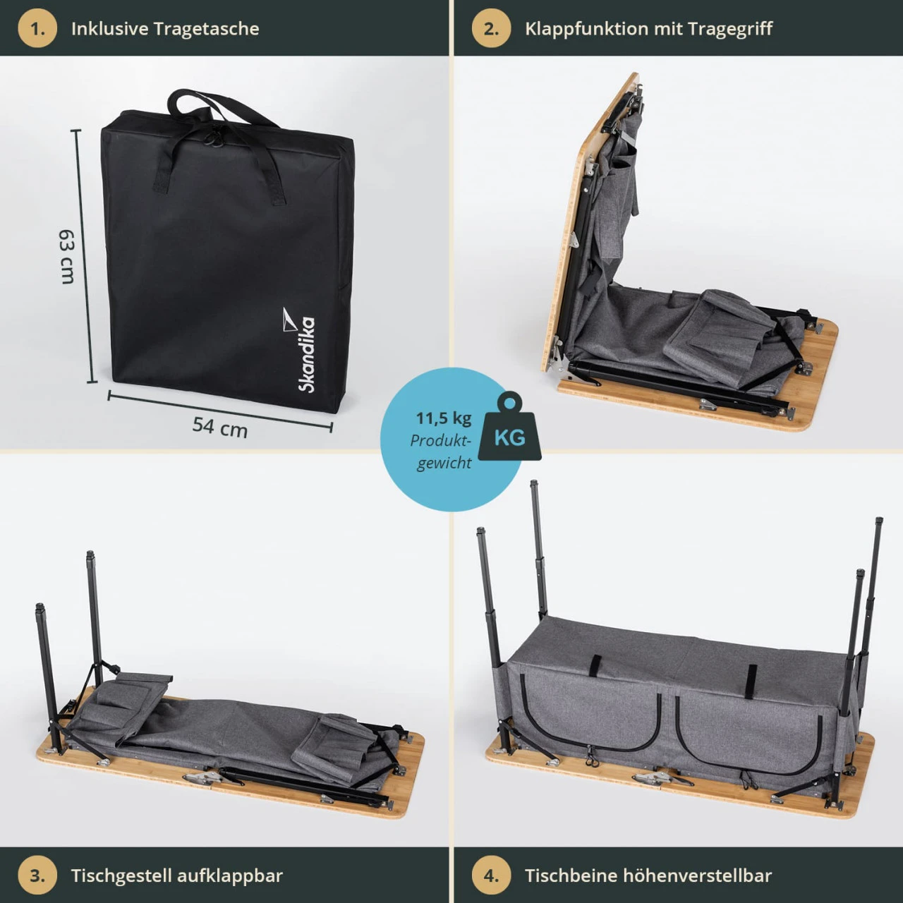 - Faltbares Multifunktionsmöbelstück mit Bambus Abdeckplatte für einen natürlichen Look
