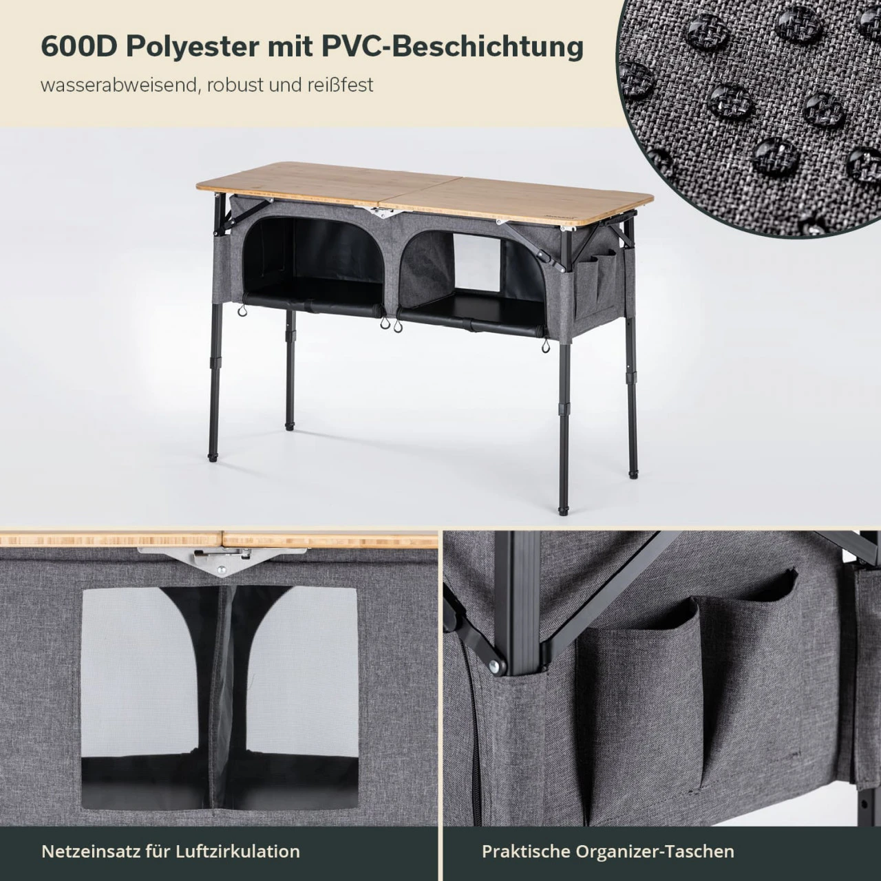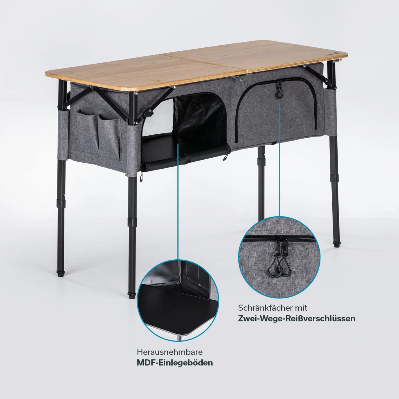 - Flexible Nutzung als Campingschrank mit Ablagefläche oder als Tisch mit Stauraum