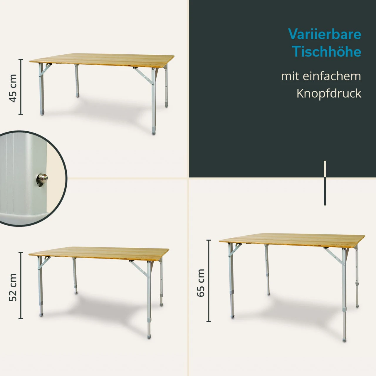 - Beine 3-fach höhenverstellbar für die Nutzung als Beistelltisch oder auch Esstisch