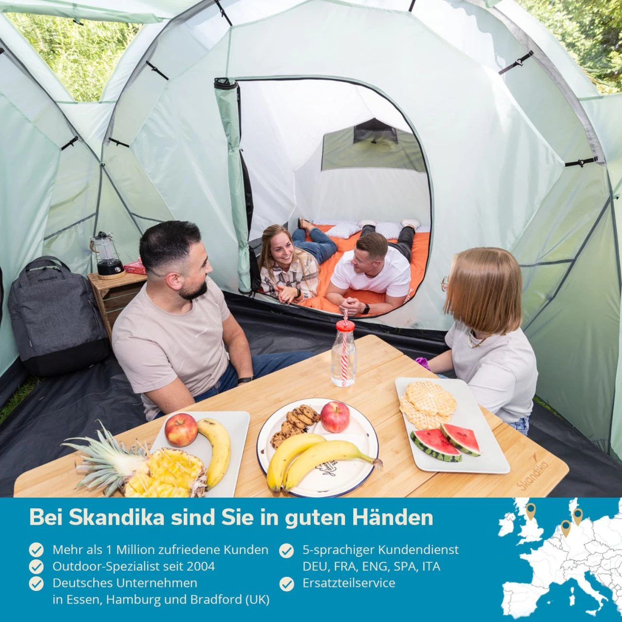 Ein stabiler Tisch ist unverzichtbar für jede Art von Outdoor-Abenteuern. Ob als Esstisch, als Abstellfläche für Geschirr und Kochutensilien oder als Karten- oder Basteltisch für einen gemütlichen Abend mit Freunden oder Spiele mit den Kindern, der Skandika Tolja ist immer eine gute Wahl.