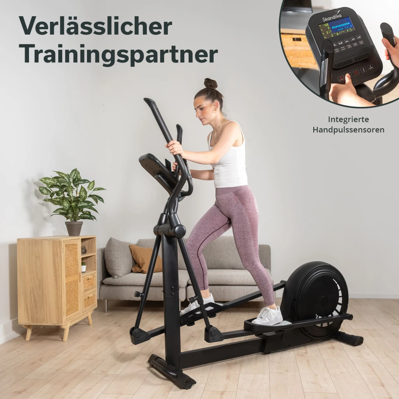 Die fixierten Handgriffe verfügen über Pulssensoren, damit während des Workouts eine bequeme Überwachung der Herzfrequenz erfolgen kann. Der eingebaute Empfänger ermöglicht ebenfalls die Übertragung der Herzfrequenz mittels eines Skandika-Brustgurtes (optional erhältlich) oder einem anderen handelsüblichen 5,3-kHz-Brustgurtes.