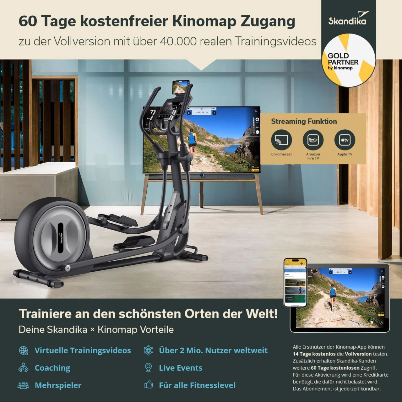 Skandika-Kunden erhalten durch die Gold-Partnerschaft mit Kinomap einen Code, um 60 Tage kostenfrei die Vollversion der Kinomap-App zu testen. Live-Videos, Coachings und virtuelle Trainingsvideos bringen jede Trainingseinheit auf ein neues Level und ermöglichen Workouts an den schönsten Orten der Welt.