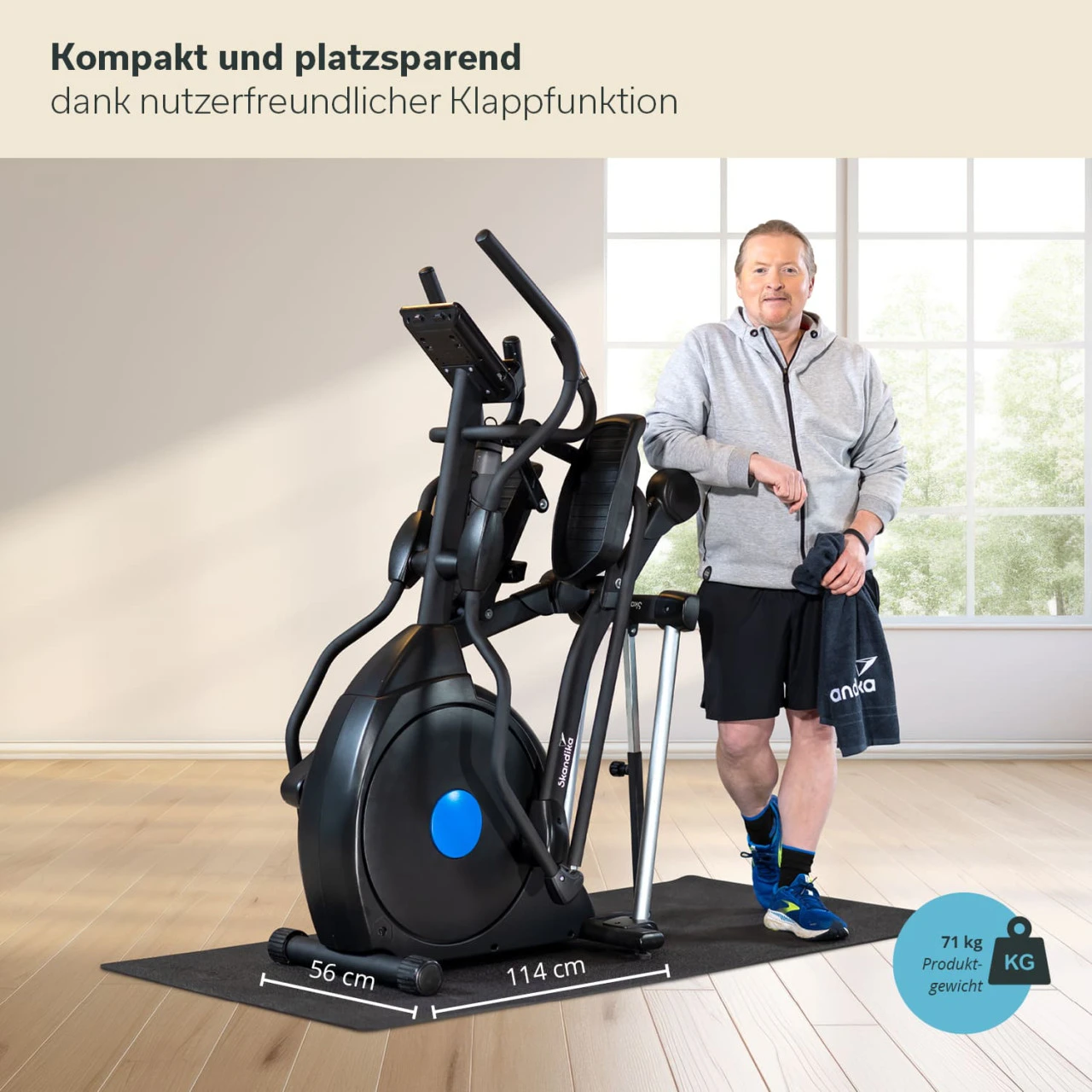 Die Skandika X-Glide Mechanik sorgt für einen besonders geschmeidigen Bewegungsablauf, der nicht nur dem natürlichen Laufen sehr ähnlich ist, sondern auch schonend für die Gelenke ist. Die Anti-Rutsch-Pedale sind großzügig gestaltet und die softtouch Handgriffe schweißabweisend und ebenfalls rutschfest.