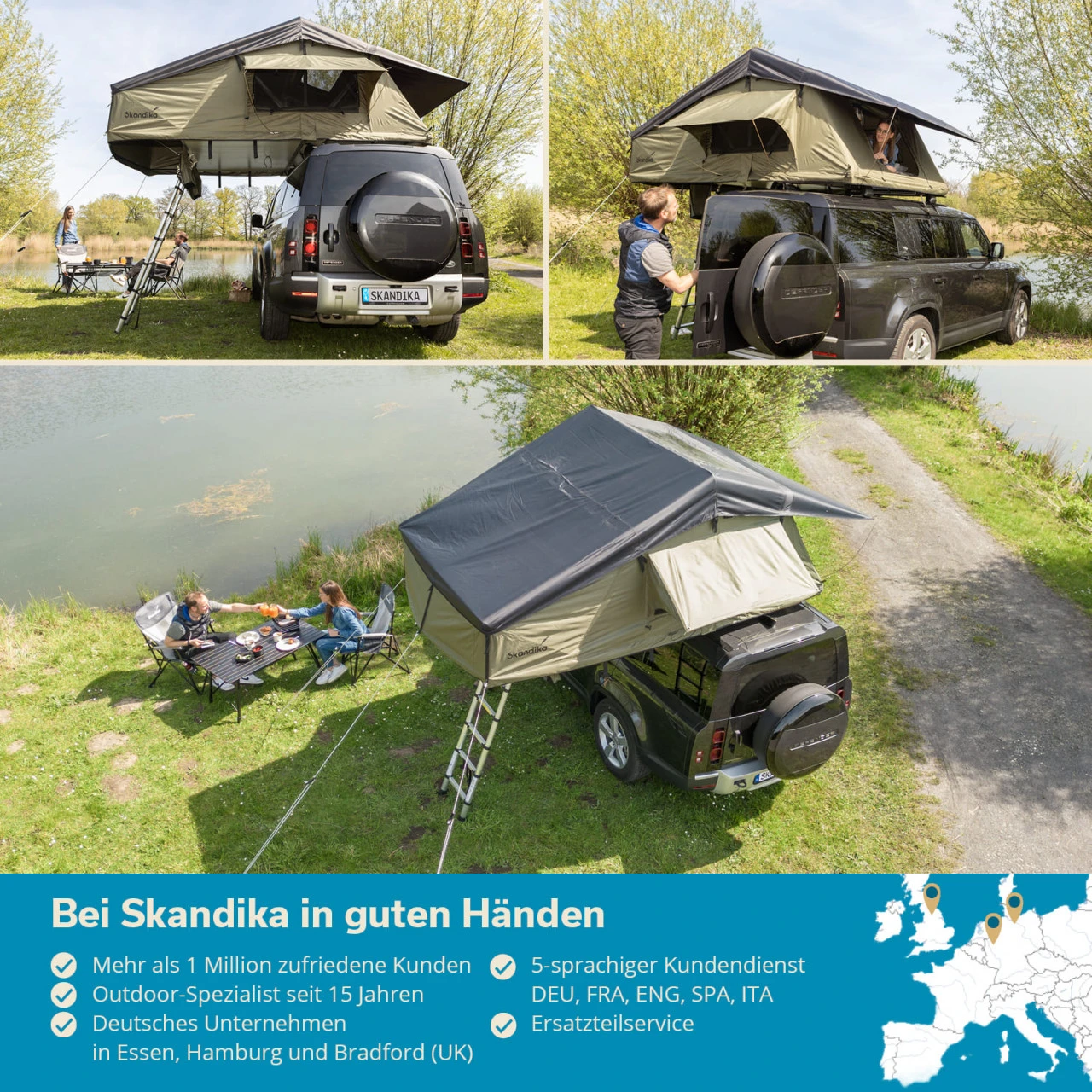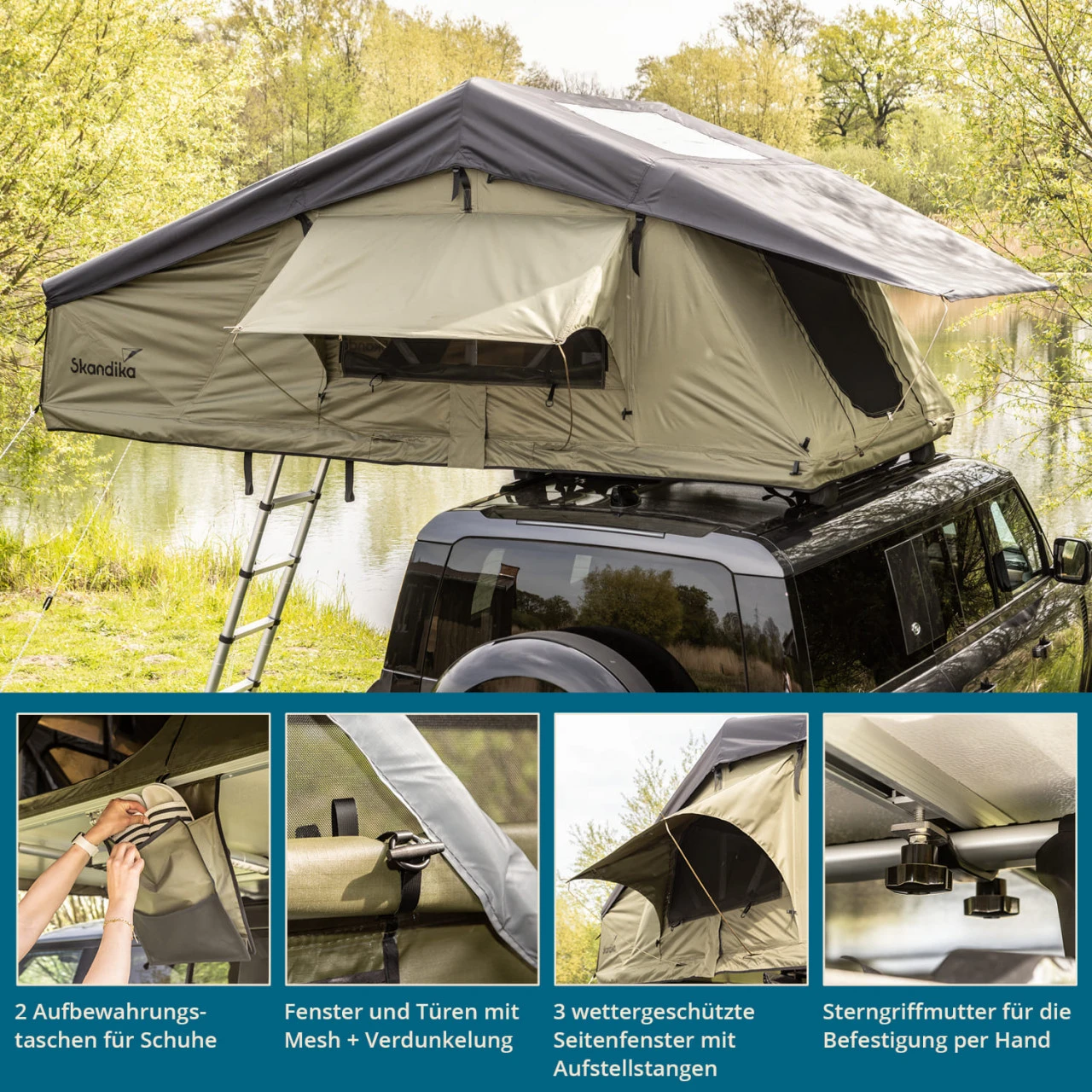 Mit wenig Aufwand machen Skandika Freeland Dachzelte es jedem möglich, unsere wunderschöne Natur zu genießen. Ob auf einem längeren Roadtrip oder für ein romantisches Pärchen-Wochenende, ob mitten in der Wildnis oder in einer ruhigen Ecke auf dem Campingplatz – die Skandika Freeland Dachzelte erfüllen alle Ansprüche an Praktikabilität und Komfort.