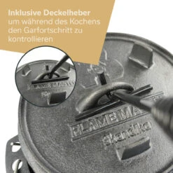Der Skandika Flame Master ist bereits voreingebrannt und kann direkt verwendet werden. Er wird nach dem Gebrauch einfach mit heißem Wasser (ohne Spülmittel) gereinigt. Für eine besondere Langlebigkeit empfehlen wir, den Topf danach mit Öl einzureiben. Ein praktischer Deckelheber und eine robuste Tragetasche sind im Lieferumfang enthalten.