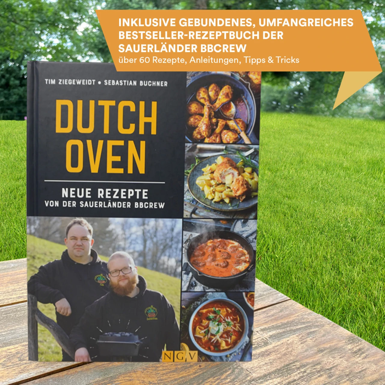 Nicht nur Klassiker wie Schichtfleisch gelingen in dem Skandika Dutch Oven perfekt. Auch Zimtschnecken, Brot oder Kuchen lassen sich hervorragend im Gusstopf zubereiten. Damit die Rezeptideen nicht so schnell ausgehen, beinhalten alle Skandika Dutch Öven das umfangreiche Rezeptbuch der Sauerländer BBQ Crew, welche mittlerweile echte Youtube-Stars der BBQ Szene sind.