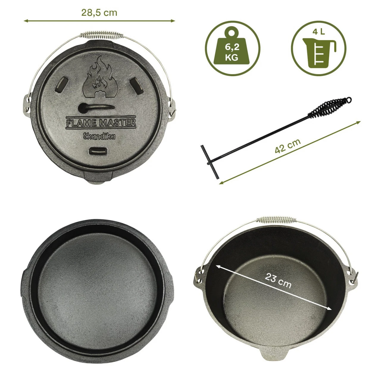 - Dutch Oven Set aus 4 L Gusseisen-Topf mit 1,1 L Deckel und umfangreichem Zubehör