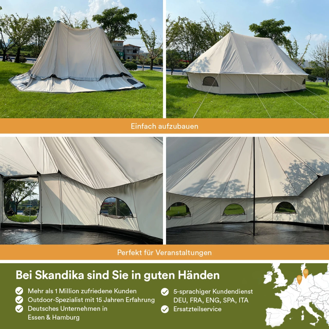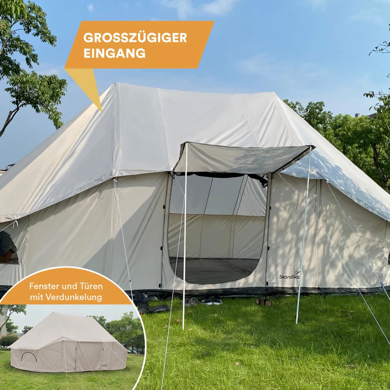 - Eingangstür als Sonnendach nutzbar (Aufstellstangen inklusive)