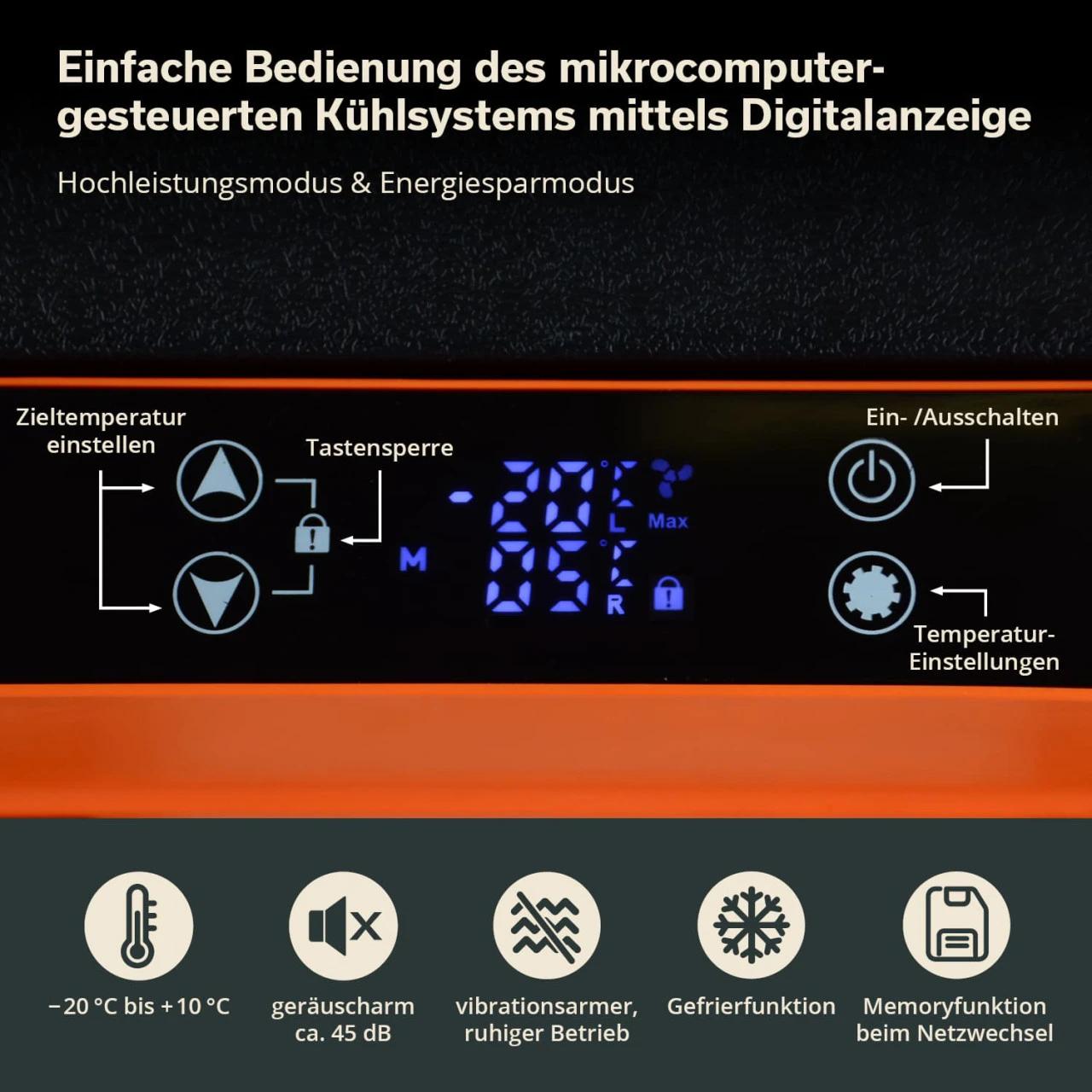 Die Box hat ein Hochleistungsmodus für schnelle Kühlung und maximale Gefrierleistung, sowie ein Energiesparmodus für die effiziente Temperaturhaltung. Einmal am Stromnetz auf die entsprechende Temperatur gekühlt, ist sie dann auch bereit für den mobilen Einsatz und hält Dank hochwertiger Isolierung die Temperatur im Innenraum sehr lange stabil.