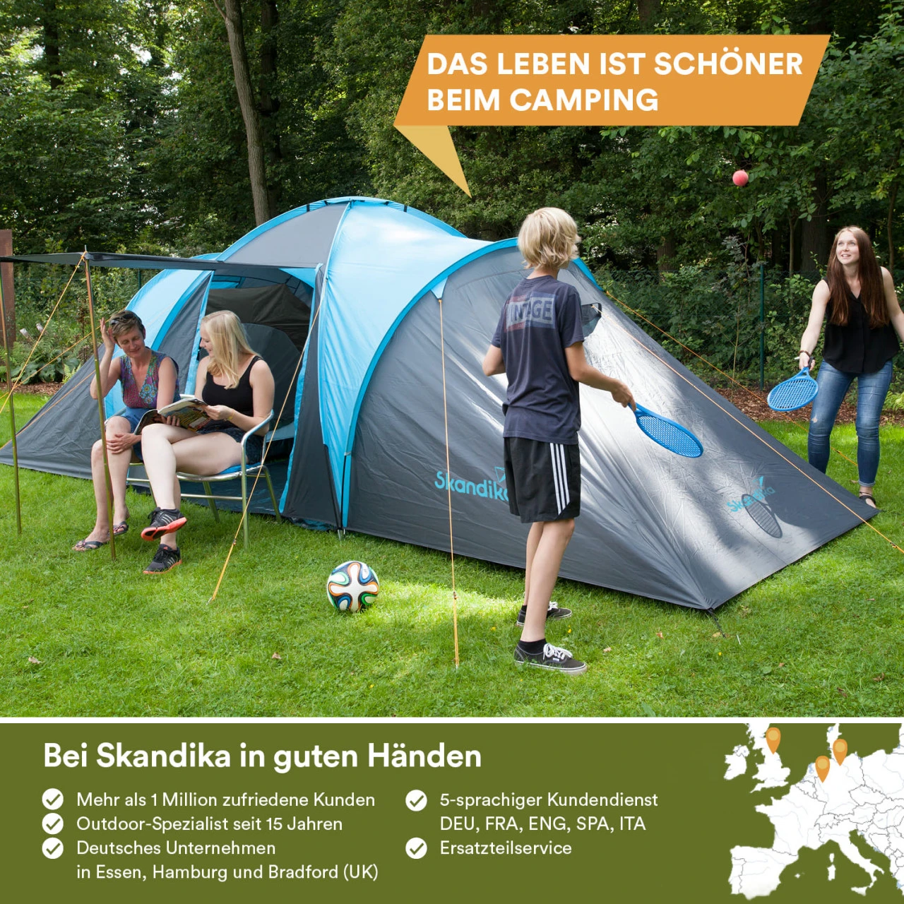 Das Hammerfest 8 Sleeper Protect ist ein Campingzelt für bis zu 8 Personen mit zwei gegenüberliegenden Schlafkabinen und vielen großartigen Extras wie der Skandika Sleeper Technologie und einem eingenähtem Zeltboden.