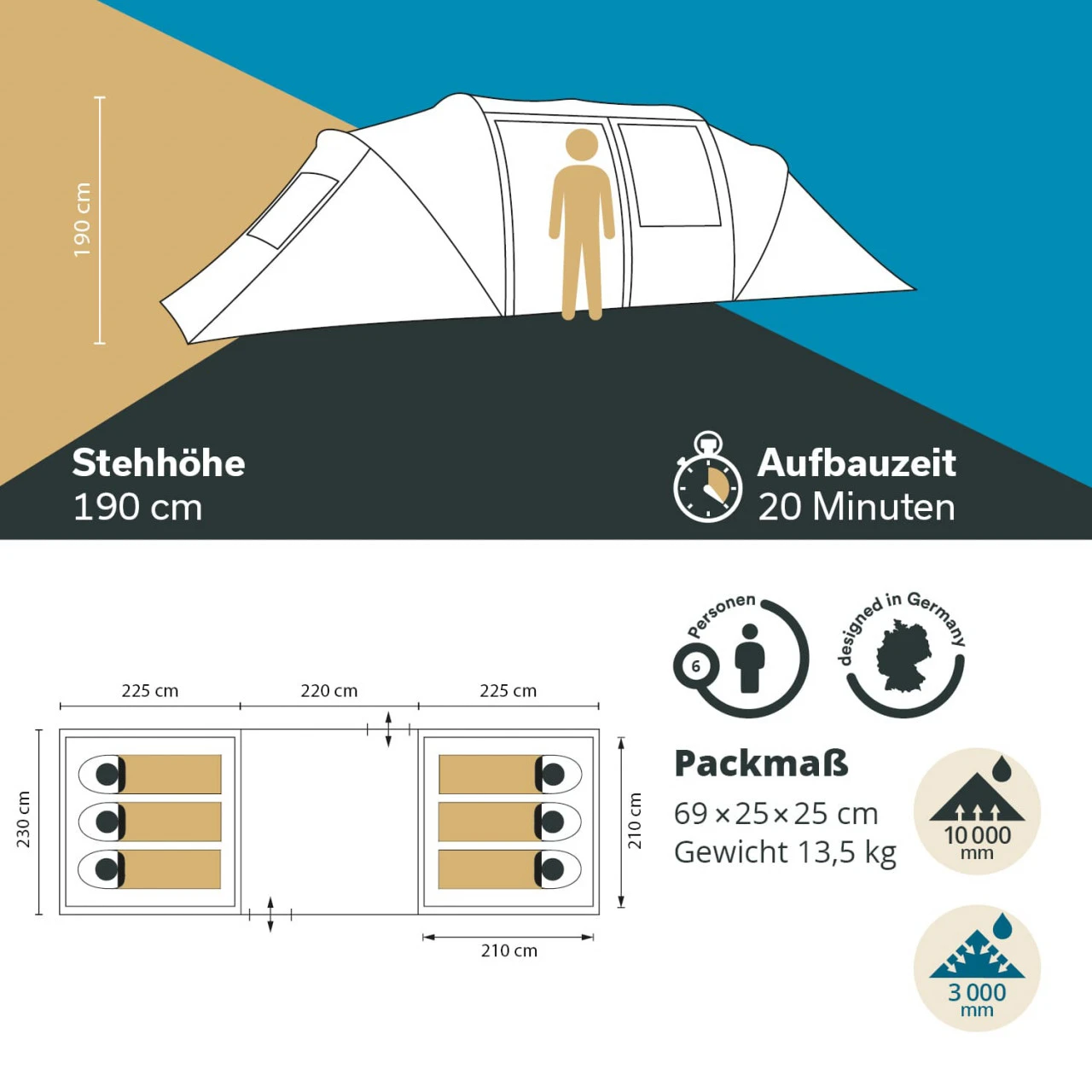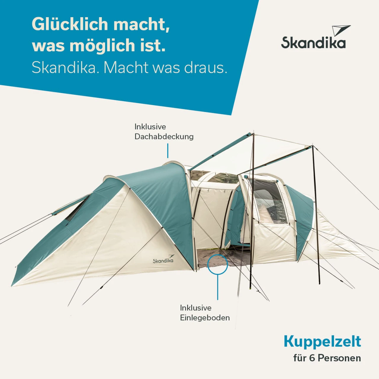 - Inklusive passender Zeltboden für den Wohnbereich
