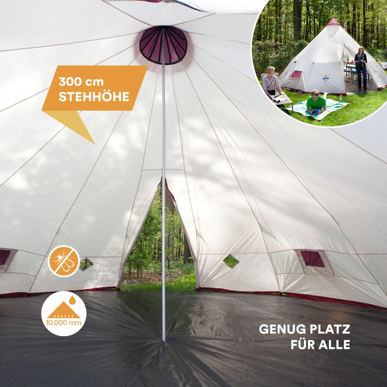 - Großes 12-Personen Tipi-Zelt für Familienurlaube, Festivalbesuche und Partys