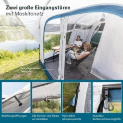 - Kompaktes Kuppelzelt mit Kabine für 4 Personen und geräumigem Vorraum für Gepäck
