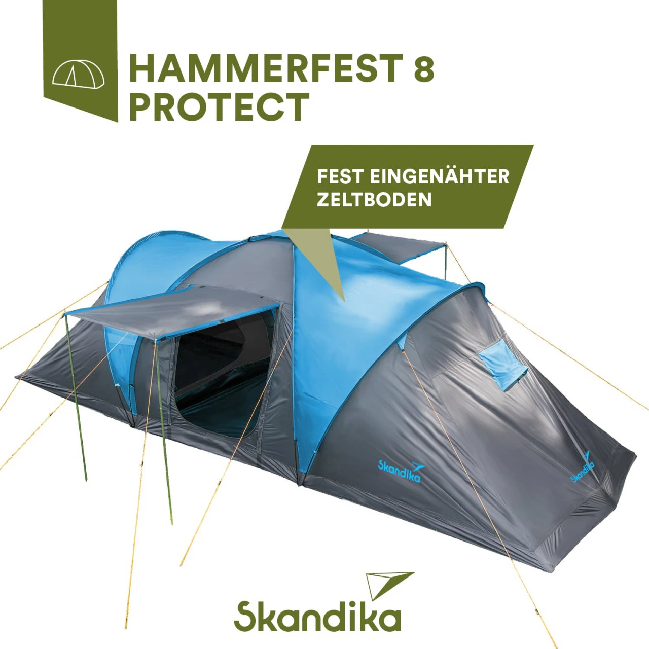 Familien und Gruppen von bis zu acht Personen können es sich in diesem praktischen Zelt gemütlich machen. Das Hammerfest Protect ist auch in zwei weiteren Größen für vier bzw. sechs Personen erhältlich.