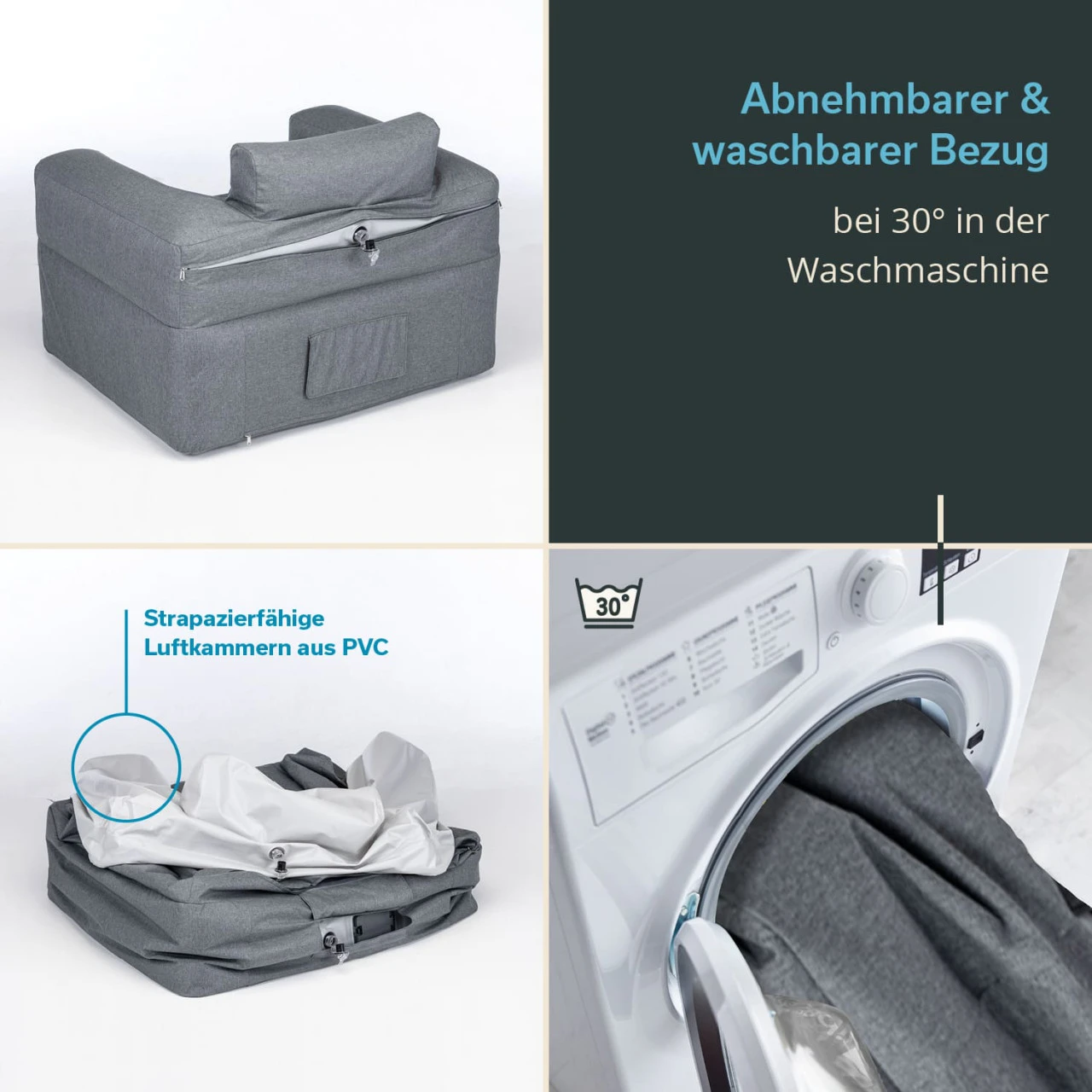 - Hautfreundlicher, reißfester Bezug, komplett abnehmbar und bei 30 °C maschinenwaschbar