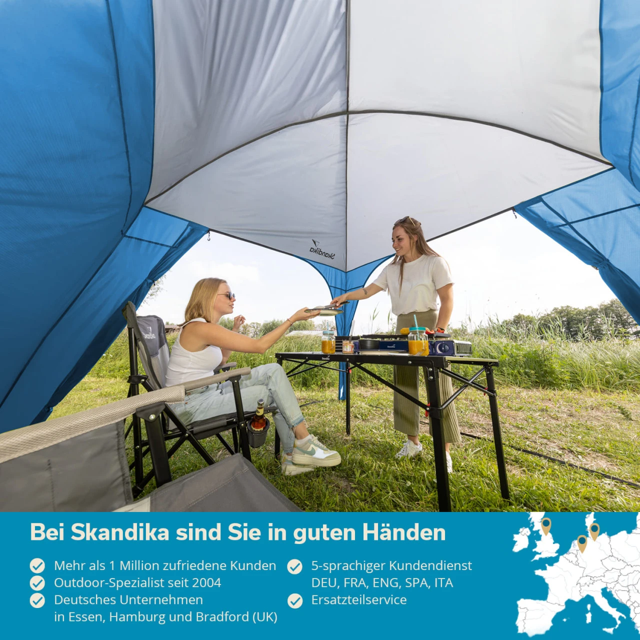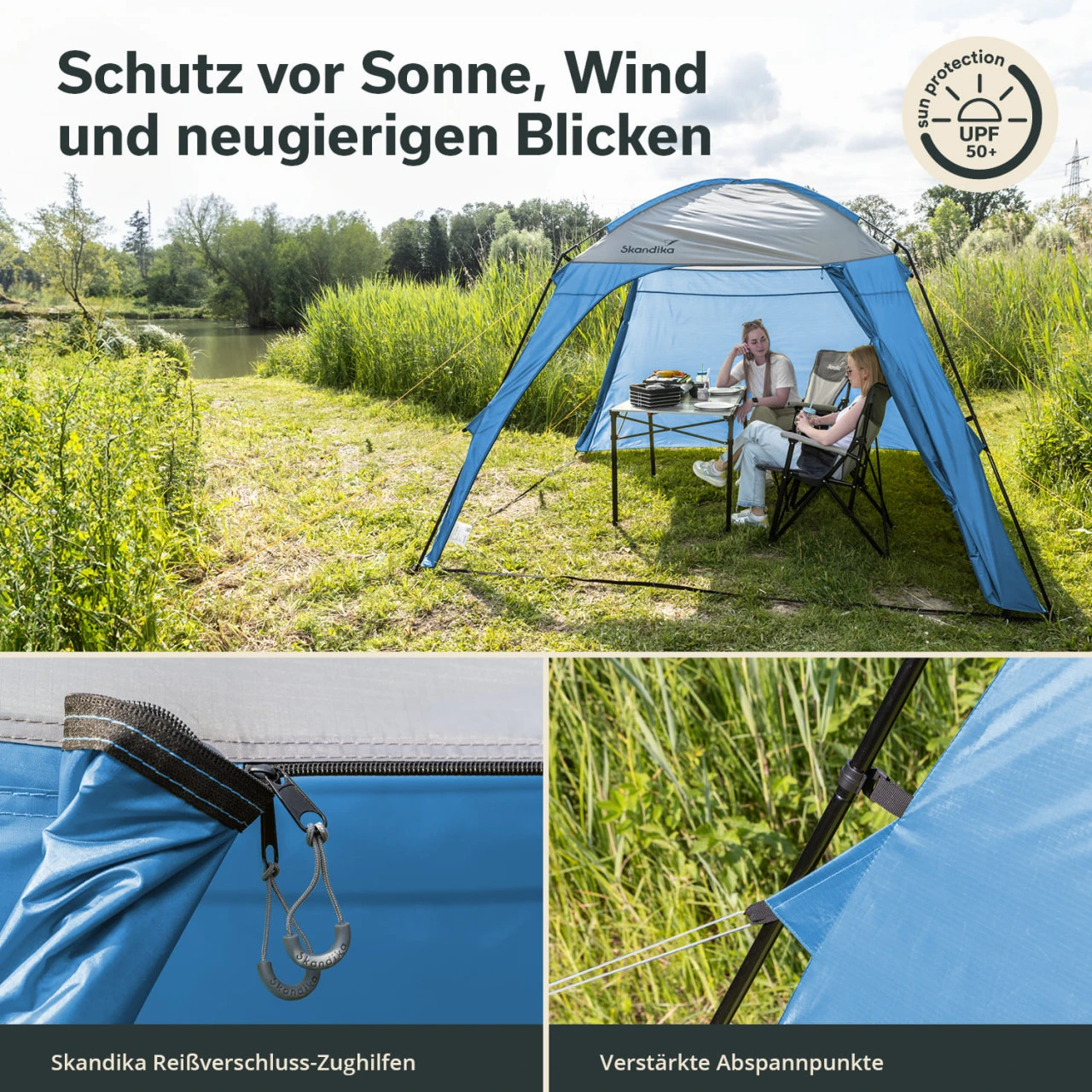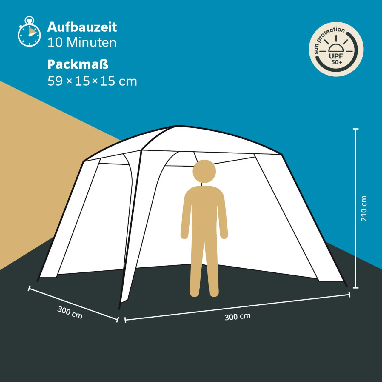 Der Skandika Pavillon ist vielseitig einsetzbar: zum Beispiel als Sonnen- oder leichter Regenschutz für Garten oder Camping etc., oder auch als Insekten- und Laubschutz für den Gartenpool. Beim nächsten Trödelmarkt sind Ihre Sachen unter dem Pavillon sicher und geschützt und das Buffet auf der Gartenparty ebenfalls! Der Pavillon hat zwei feste Wände aus 100 % Polyester und zwei große Panoramatüren, die nach Bedarf geöffnet werden können. Mit einer Größe von 300 x 300 cm bietet er ausreichend Platz für eine gemütliche Sitzgruppe.
