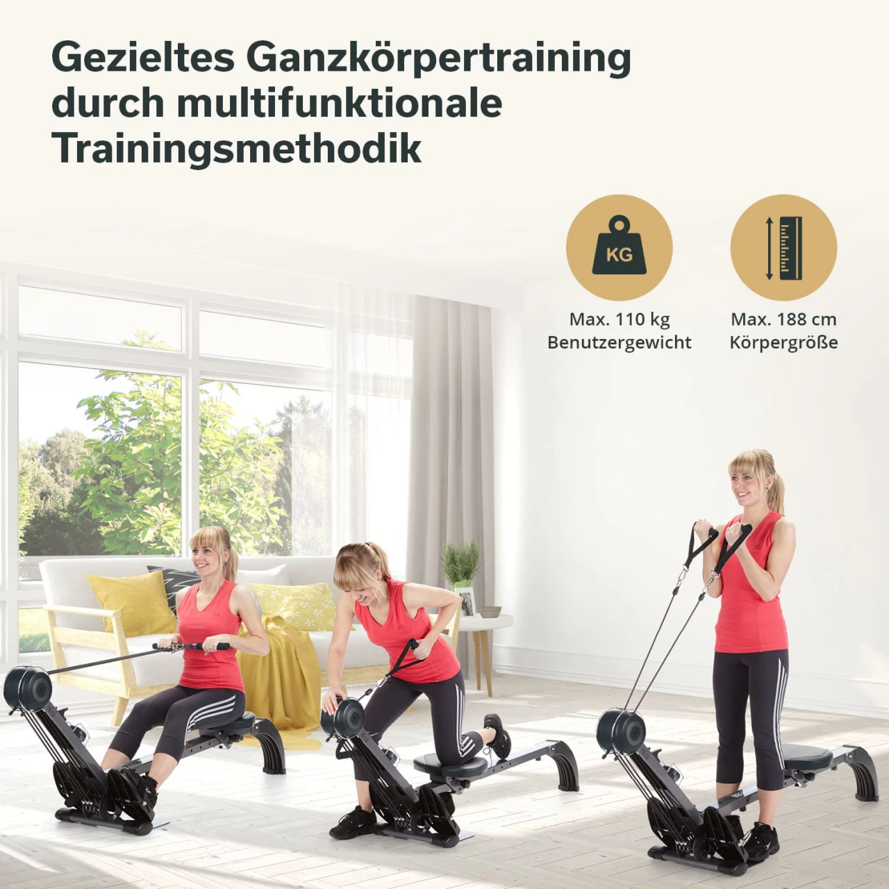 Hocheffektives Ganzkörper-Rudern in den eigenen vier Wänden: Poseidon ist ein waschechtes Rudergerät – und doch viel mehr als das! Eine Workout-Station für Rumpf und Oberkörper zum Beispiel. Oder eine Bizepsmaschine: Jederzeit startklar für hocheffektive Curls im Sitzen und Stehen. Konstruktion und Ausstattung machen’s möglich. Für das Poseidon gilt: ein Fitnessgerät – diverse Trainingsoptionen!