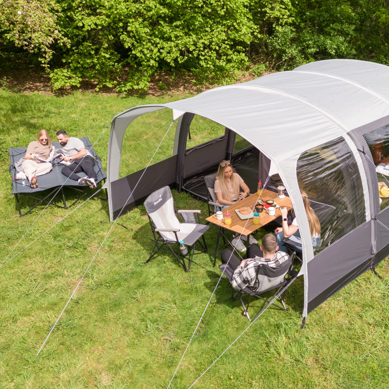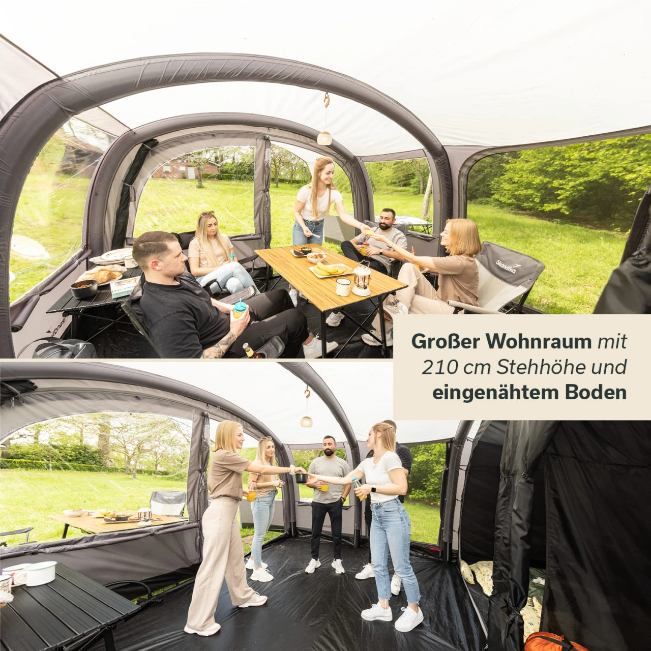 Nie war der Zeltaufbau einfacher: Das Timola 6 Air Protect mit Skandika-Air-Rise-Technologie wird nämlich einfach aufgepumpt! In nicht einmal zehn Minuten kann eine Person so das komplette Schlafquartier herrichten. Dadurch wird das Timola zum entspannten Begleiter für Outdoor-Fans, egal ob sie allein, mit der Familie oder mit guten Freunden unterwegs sind.
