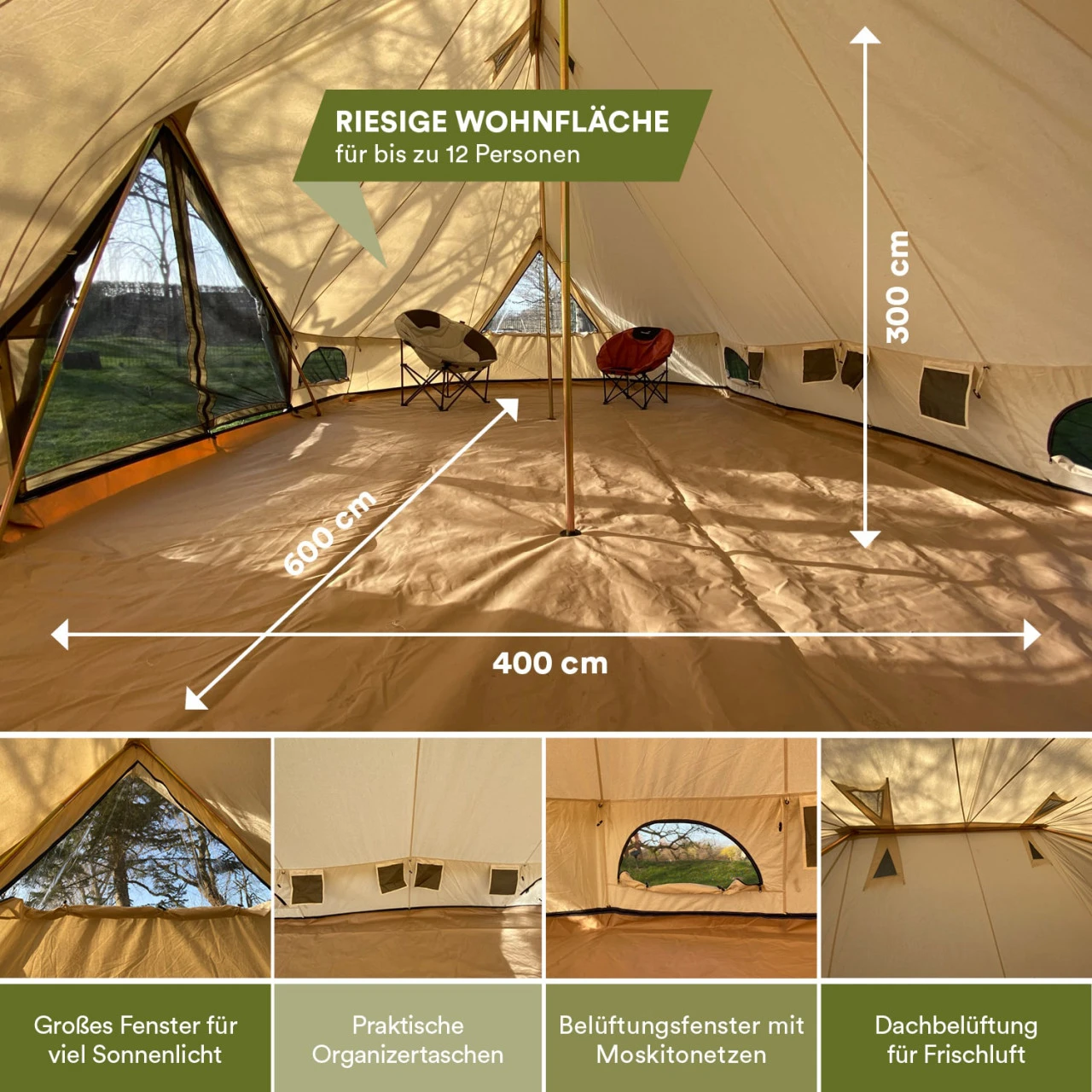 - Perfekt für Glamping Abenteuer mit viel Platz für „echte“ Möbel und Deko