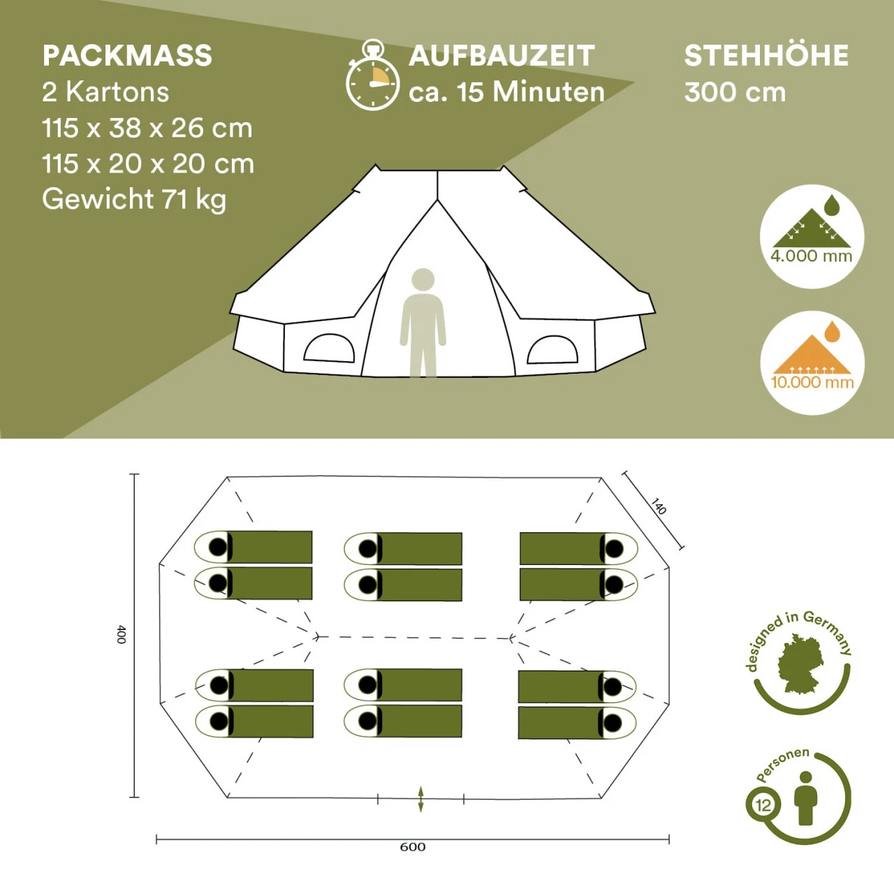 - Großes 12 Personen Tipi Zelt für Gartenfeiern, Familienurlaube, Festivalbesuche und Partys