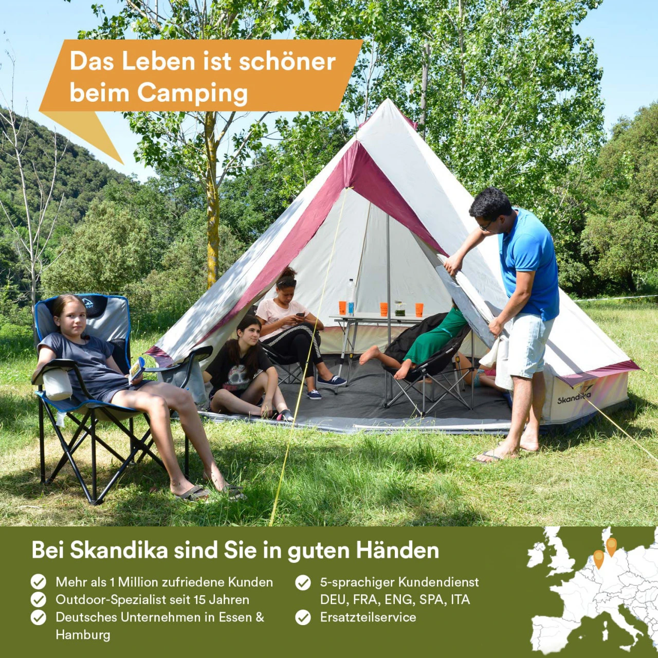 Heutzutage hat das Tipi seine ursprüngliche und traditionelle Funktion als Dauerwohnstätte verloren. Trotzdem übt es immer noch eine ungemeine Faszination aus. Wie kein anderes Zelt vermittelt das Tipi die erlebbare Ursprünglichkeit des Wohnens und Lebens in der freien Natur. Nur eins unterscheidet das Skandika Tipii II von seinen historischen Vorfahren: darin Feuer machen ist strikt verboten!