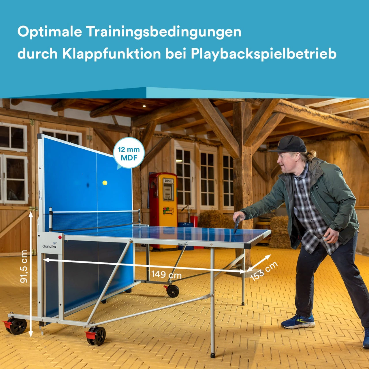 Die Skandika Tischtennisplatte Indoor ist mit ihrer hochwertigen Qualität perfekt für Sportspaß mit Familie und Freunden sowie für spannende Runden zu zweit oder alleine mit aufgestellter Platte geeignet. Ob Anfänger, Fortgeschrittene oder Profis, damit für den Spielespaß nichts fehlt, umfasst das Set Schläger, Bälle und eine Abdeckung.