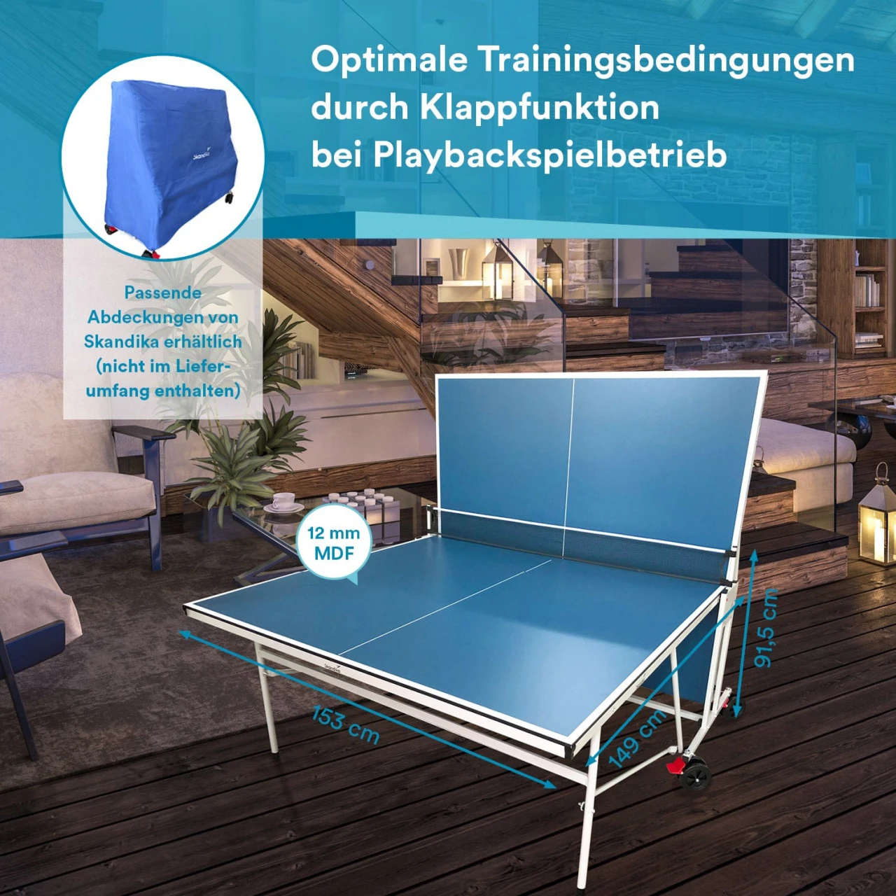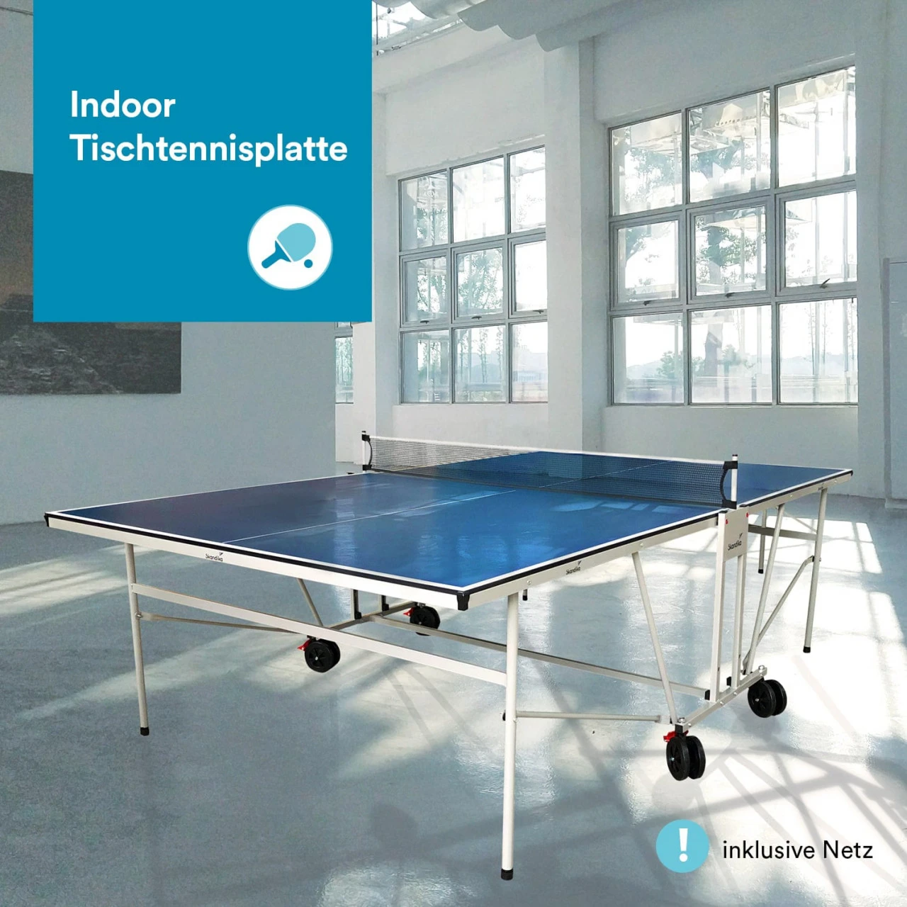Die Skandika Tischtennisplatte Indoor ist mit ihrer hochwertigen Qualität perfekt für Sportspaß mit Familie und Freunden sowie für spannende Runden zu zweit oder alleine mit aufgestellter Platte geeignet. Der Tischtennistisch ist nach DIN EN 14468 erstellt und eignet sich für Anfänger, Fortgeschrittene und Profis gleichermaßen.