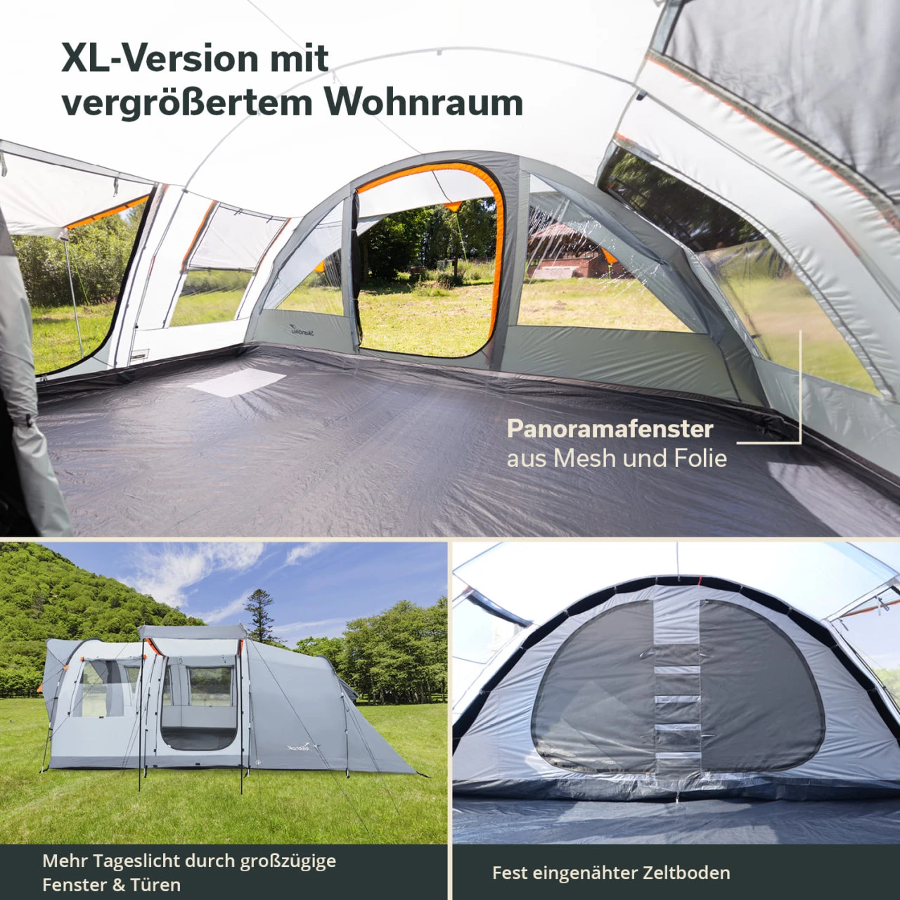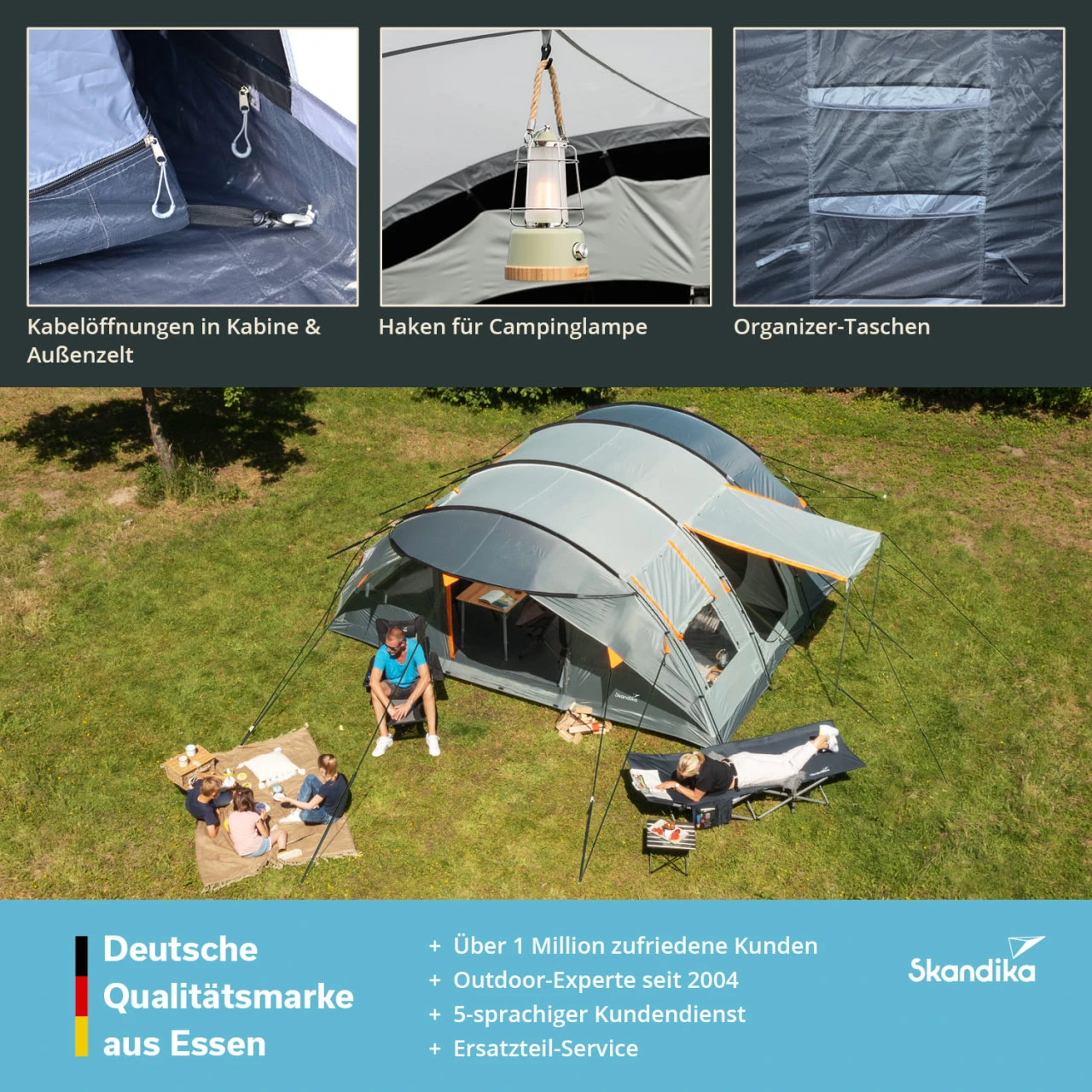 - Mit Organizer-Taschen, geschützter Kabelöffnung, Haken für Campinglampe, Tragetasche