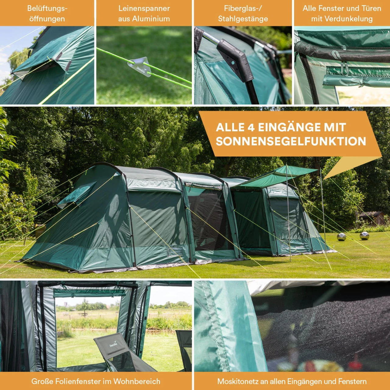- Mit passendem Zeltboden in Wannenform für den großen Wohnbereich