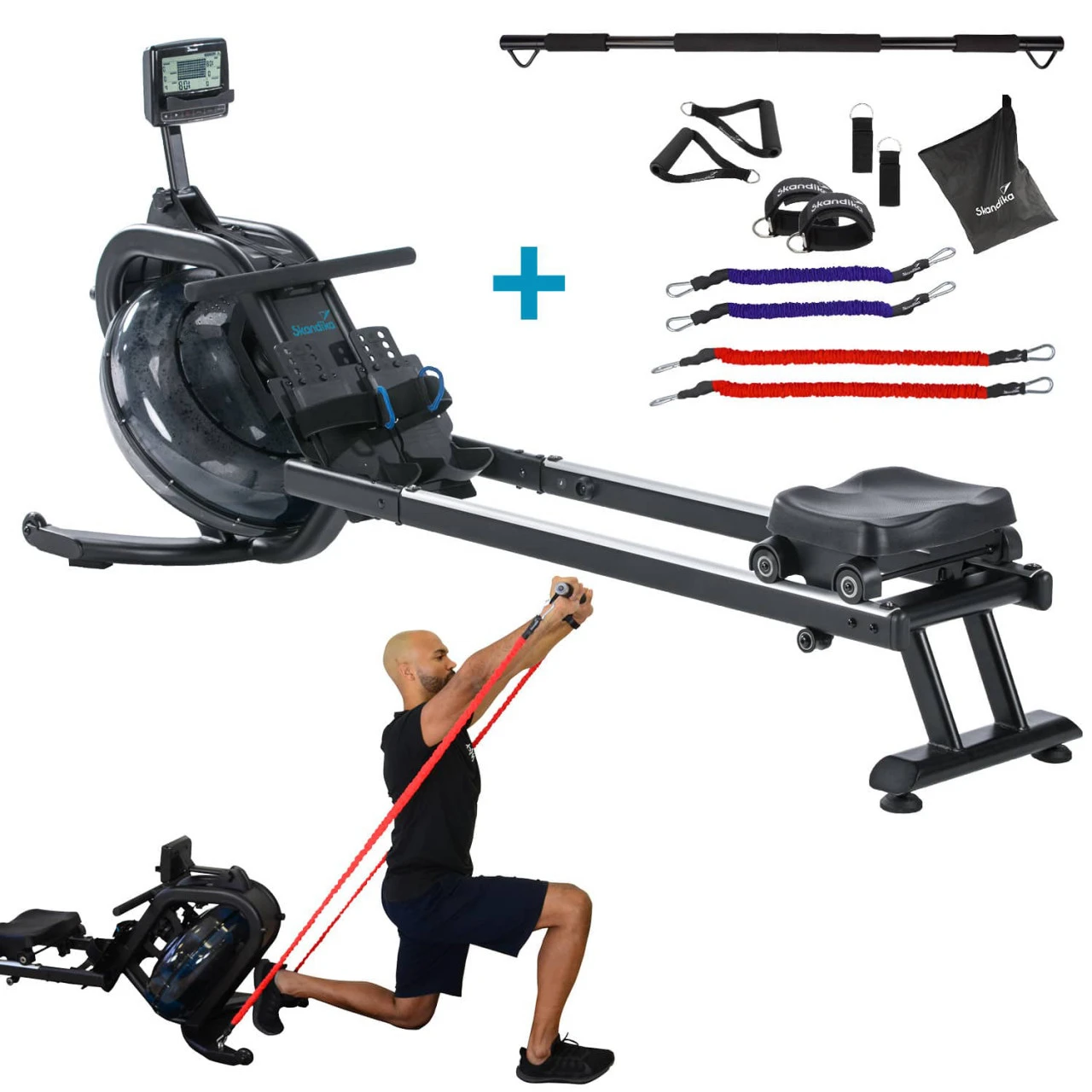 Nun auch im Set erhältlich: Unser Topseller Wasserrudergerät Nemo IV zusammen mit dem Skandika Multi-Widerstandbänder-Set. Eine unschlagbare Kombination für das perfekte Ganzkörper-Workout. In Kombination mit den Skandika Multi-Widerstandsbändern ergeben sich nun wesentlich mehr Trainingsoptionen, die gezielt Muskelkraft und -ausdauer steigern und das Herz-Kreislauf-System und den Stoffwechsel in Schwung bringen. Die perfekte Kombination für ein abwechslungsreiches Ganzkörper-Training.