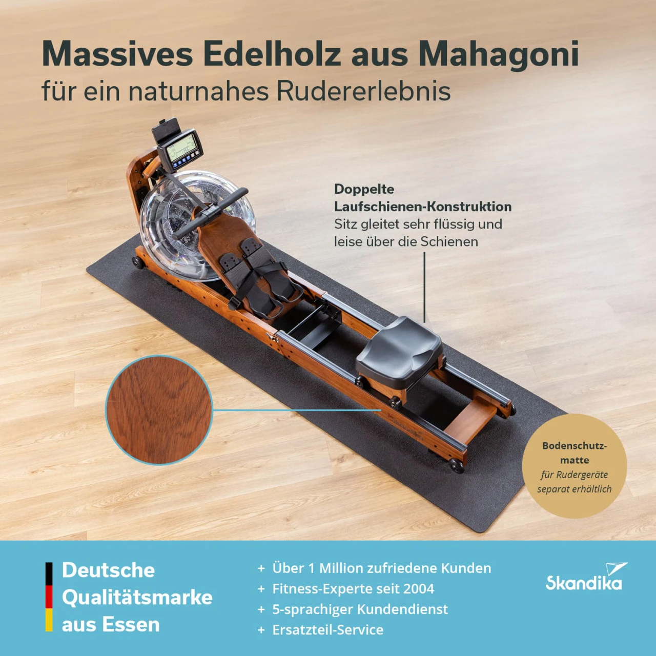 Das Nytta besticht nicht nur durch seine praktischen Funktionen, sondern auch durch das wunderschöne Holzmaterial. Aus dem Edelholz Mahagoni gefertigt, schmückt das Rudergerät jeden Raum – ob ein voll ausgestatteter Sportkeller oder das gewöhnliche Wohnzimmer.